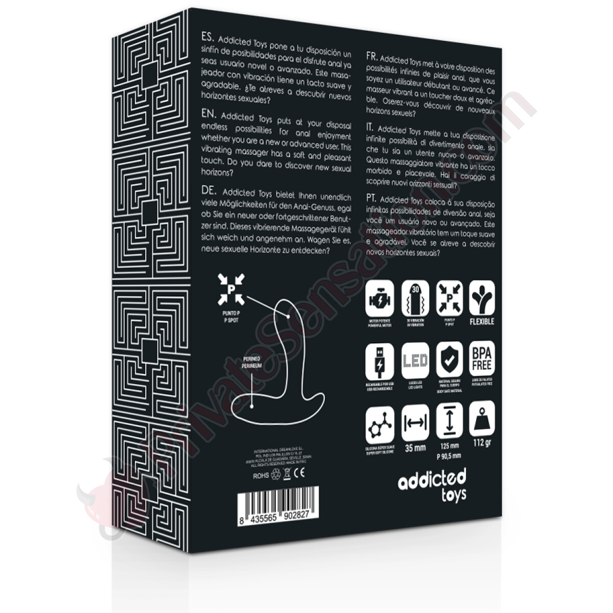La forma ergonomica e curata del massaggiatore Adicted Toys non è casuale. Ogni curva è studiata per raggiungere con precisione le zone più sensibili del corpo maschile: