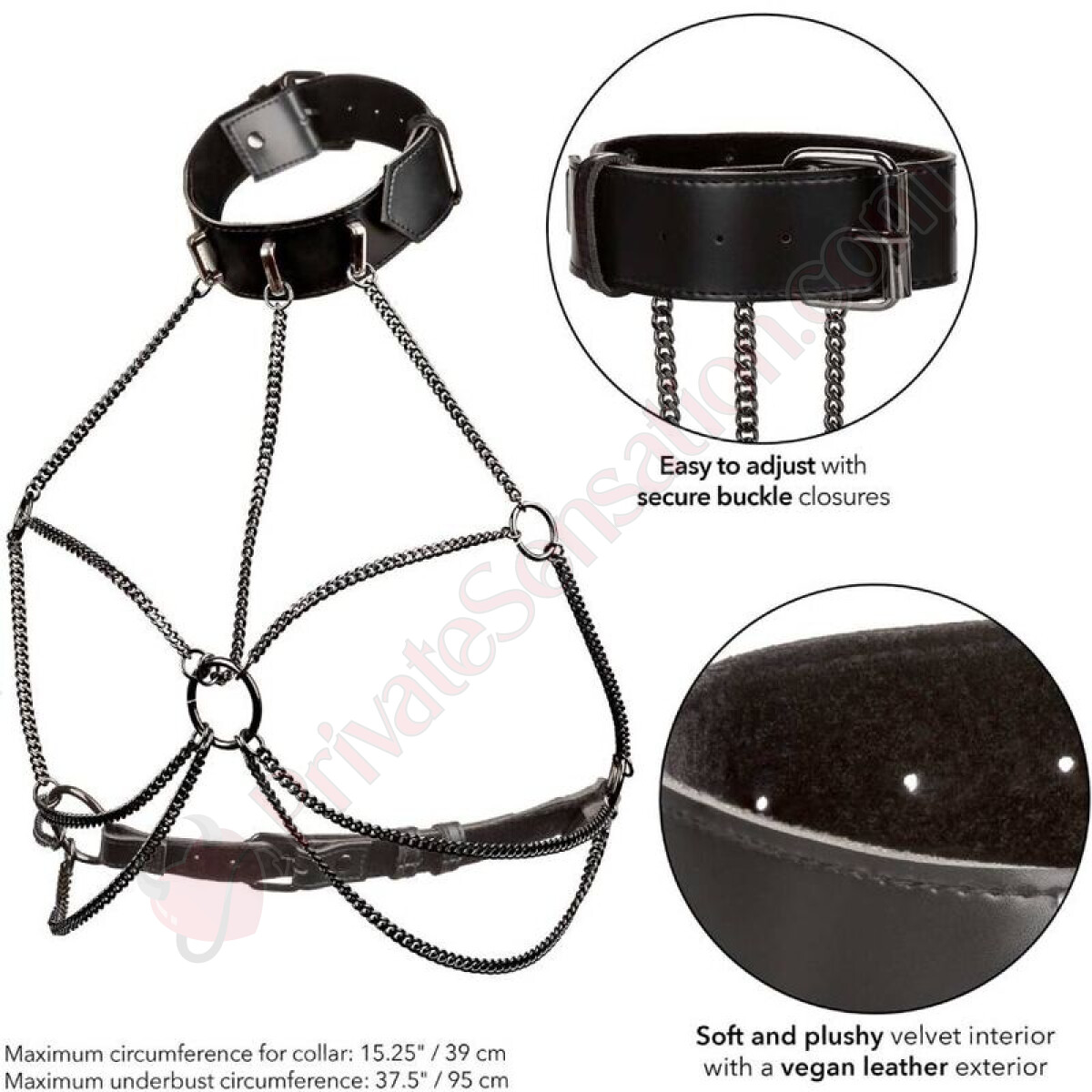 Pronto a esplorare nuove dimensioni di piacere e stile? L'Arnese Collar Multi Chain della Collezione Euphoria di CalExotics è l'accessorio che fonde audacia fetish ed eleganza contemporanea, progettato per chi non ha paura di esprimere la propria sensualità. Non è solo un accessorio: è una dichiarazione di intenti, un invito a vivere momenti di intimità intensa o a distinguerti con un tocco unico durante un festival o una serata speciale.