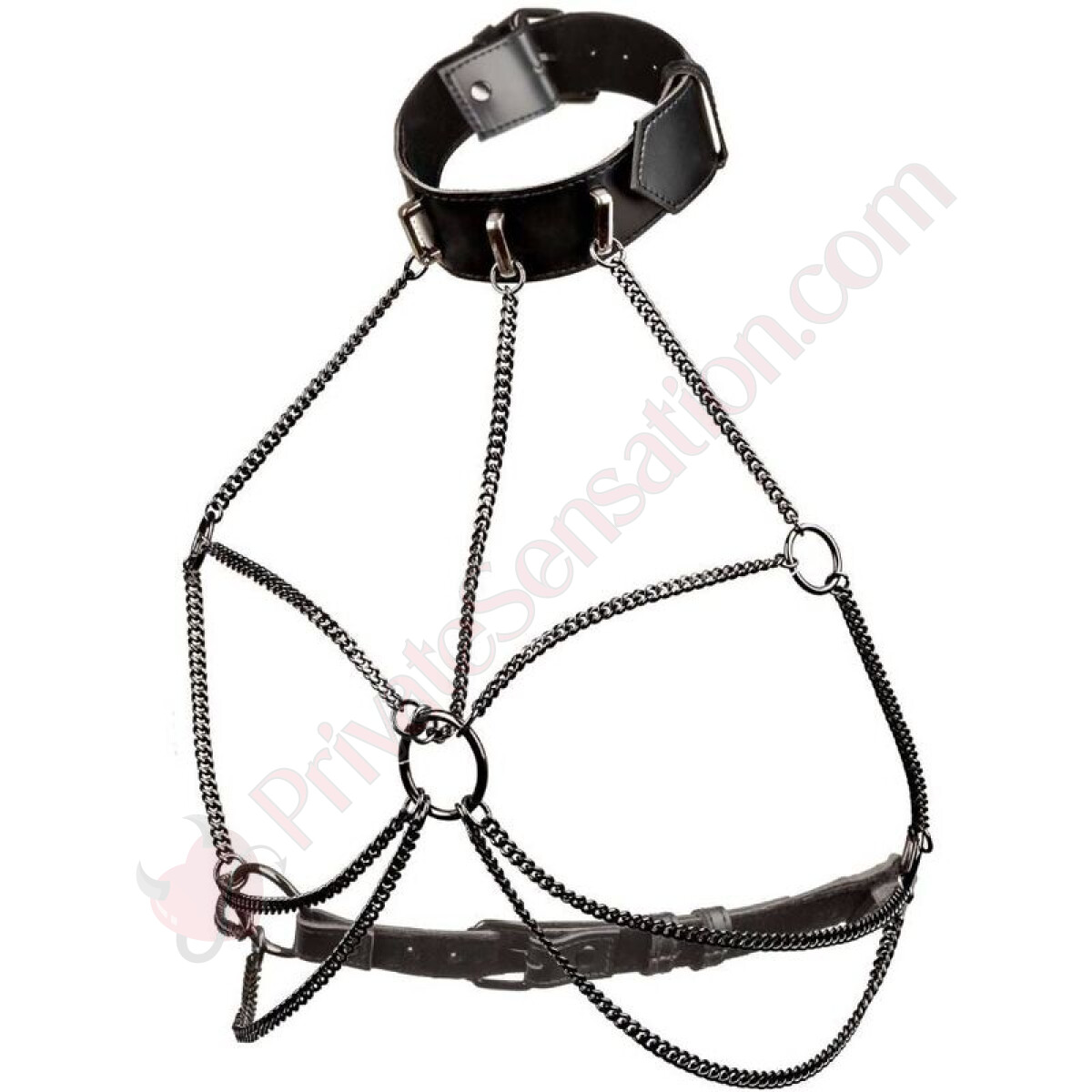 Il design cattura immediatamente l'attenzione con le sue multiple catene che si intrecciano armoniosamente, creando un effetto visivo ipnotico e sofisticato. Il robusto collarino garantisce un aggancio sicuro e confortevole, studiato per adattarsi alla perfezione al tuo corpo senza causare irritazioni. Grazie al pratico chiusura a fibbia, puoi regolarlo in pochi secondi per un fit personalizzato che si adatta alla maggior parte delle taglie standard, abbracciandoti con sicurezza e sensualità.