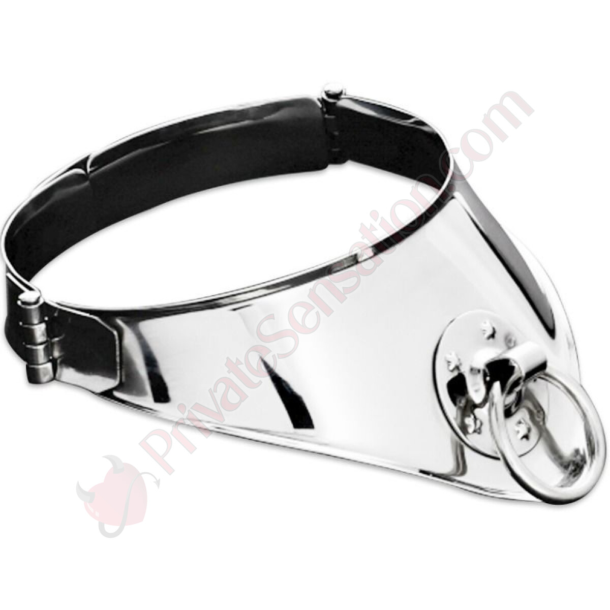 Le cerniere laterali che si aprono verso l'esterno rendono facile indossare e togliere la catenina, mentre la parte posteriore è dotata di un foro della dimensione perfetta per un lucchetto, assicurando che rimanga al suo posto per tutto il tempo che desideri. Inoltre, l'anello centrale con incavi anteriori offre la possibilità di attaccare una cintura o un ancoraggio, trasformando questo accessorio in un vero e proprio strumento di dominio. Con un diametro interno di 12,5 cm, si adatta comodamente alla maggior parte dei colli, regalando una vestibilità personalizzata e sicura.