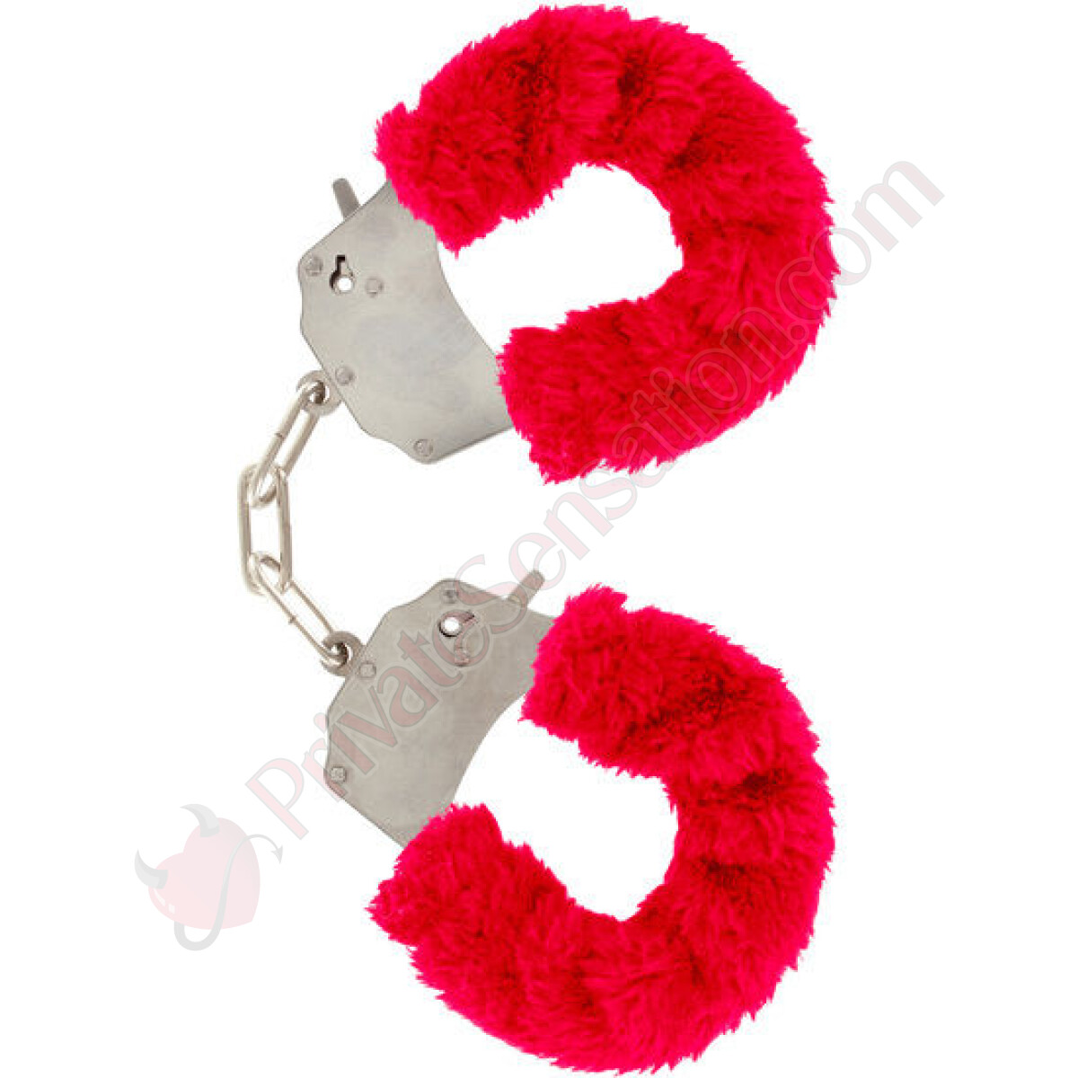 Favolose spore da polso in due pezzi unite da una catena in acciaio cromato, ricoperte da un morbido peluche attorno ai polsini rossi.