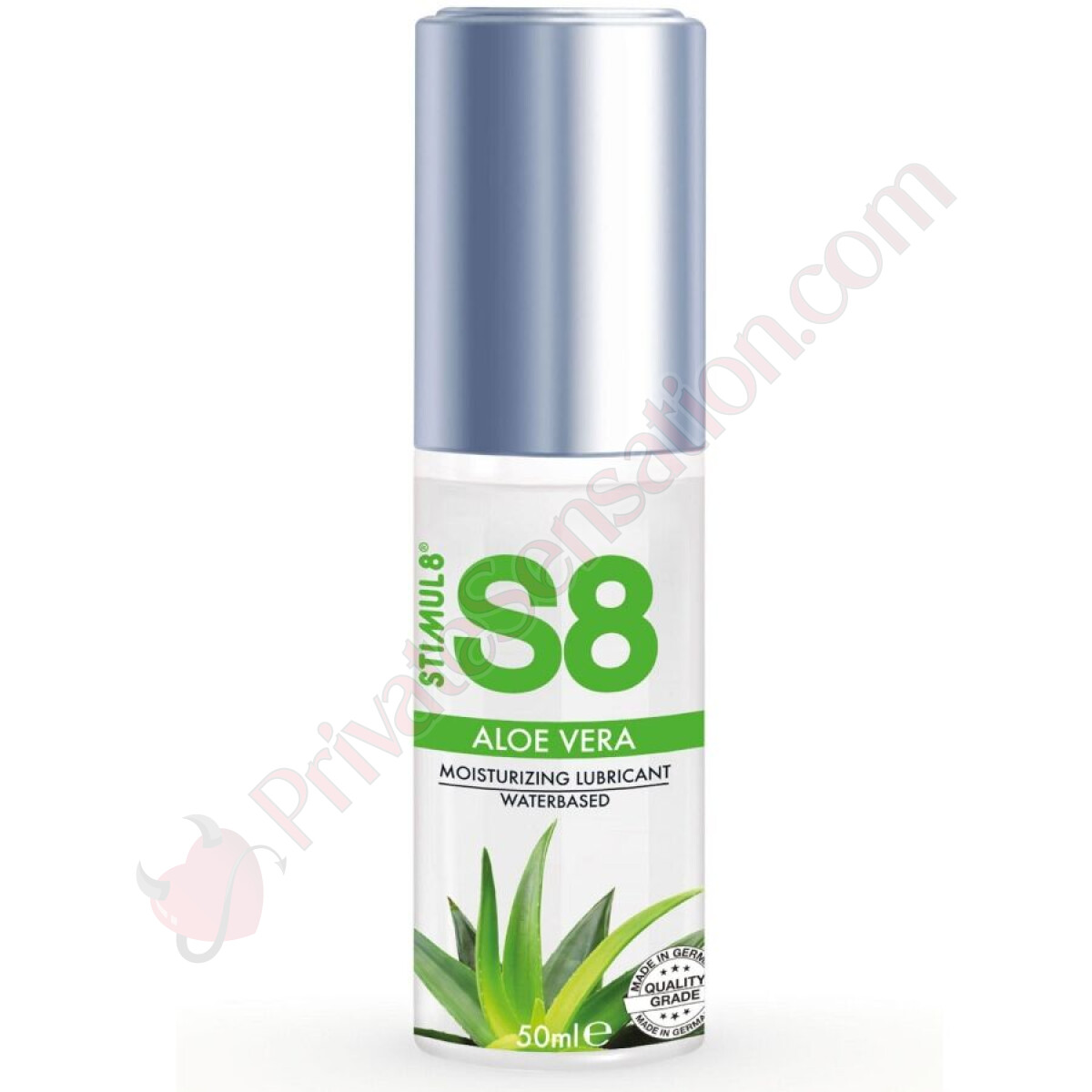 Il lubrificante S8 Aloe Vera è disponibile in una pratica confezione da 50 ml, con dimensioni compatte (12 cm di lunghezza totale e diametro inseribile di Ø 3 cm). Ideale per chi soffre di allergie, è formulato senza glutine, parabeni e zuccheri, e a base d'acqua per una facile pulizia.