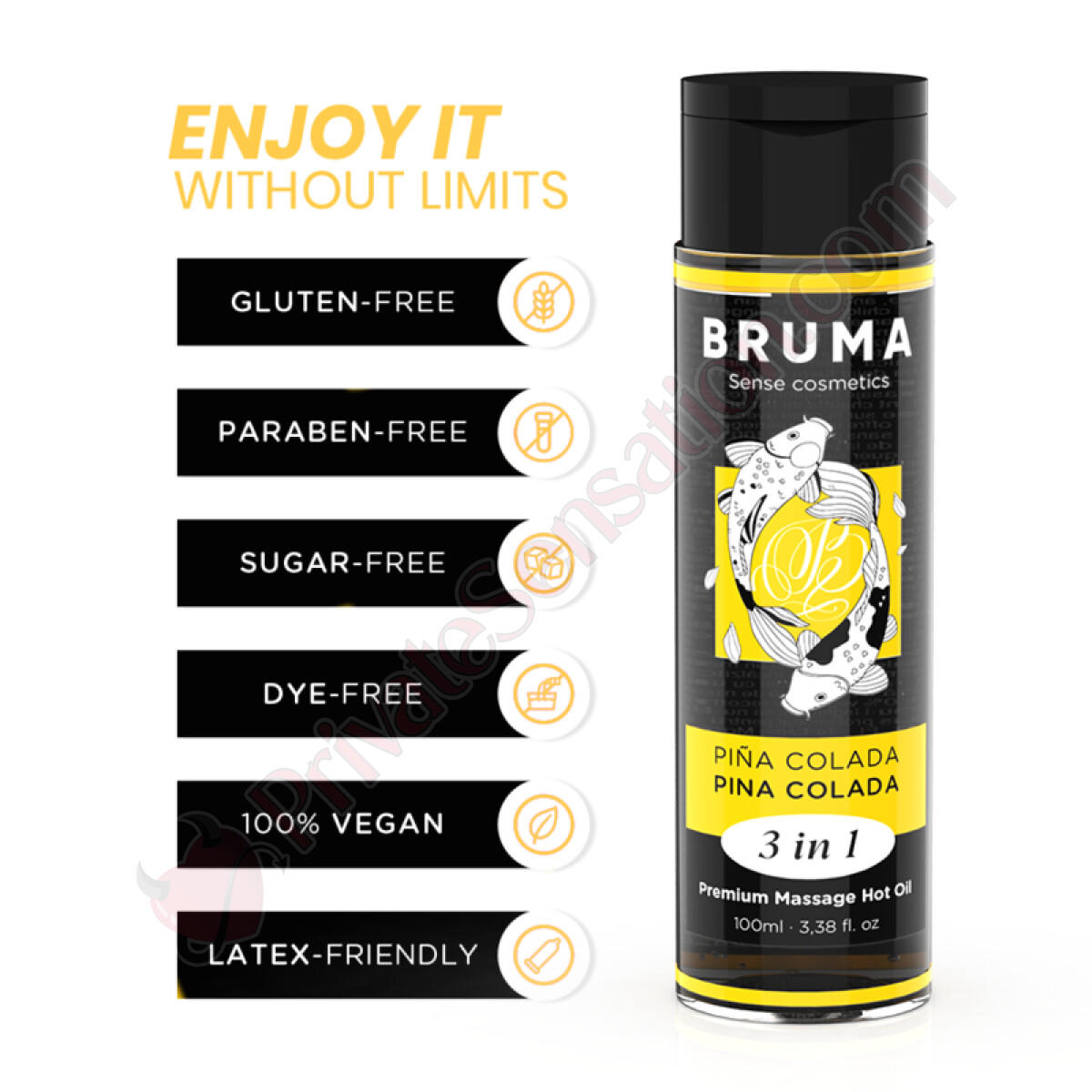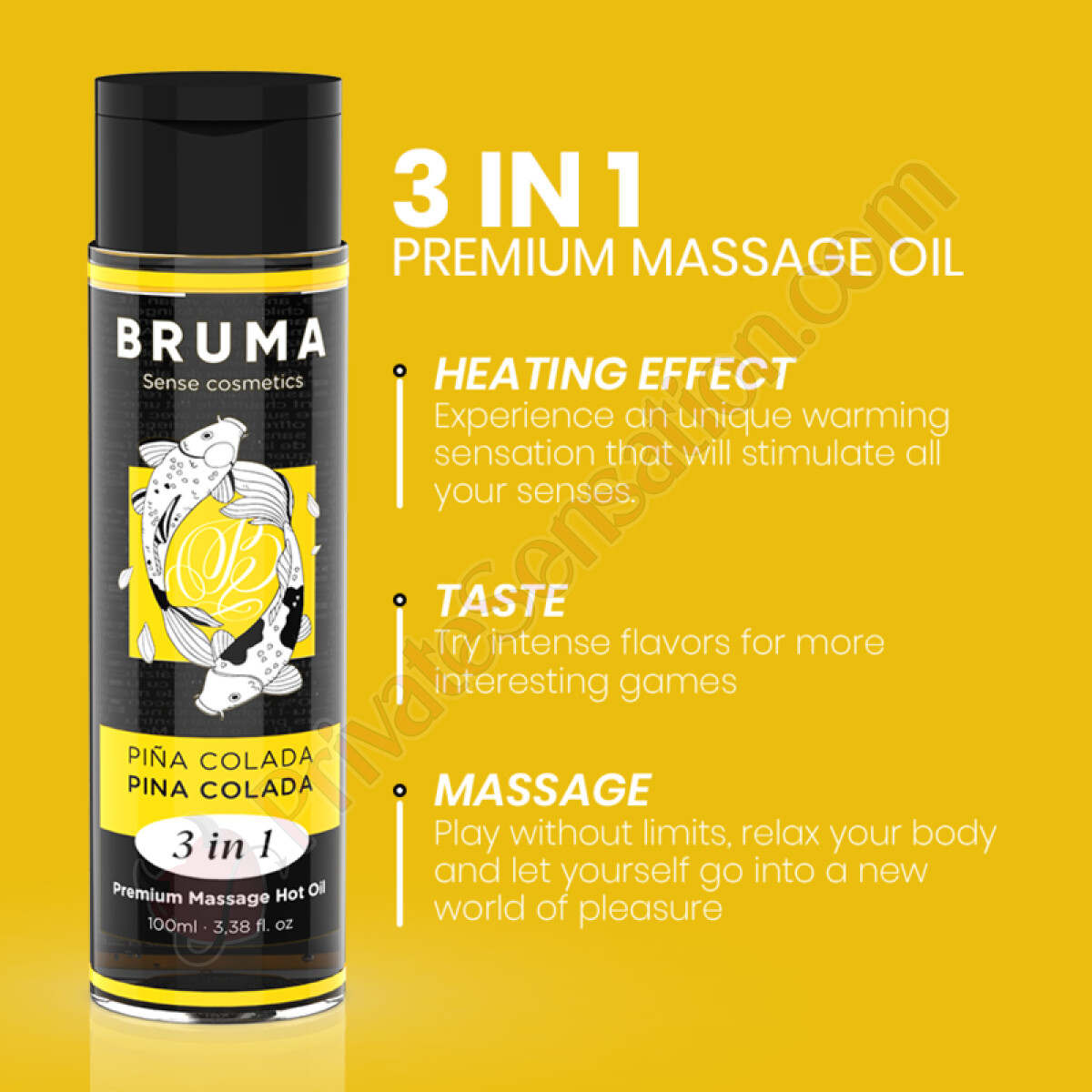 Benvenuti nel mondo del benessere e dell'intimità raffinata con l'Aceite di Massaggio Premium Effetto Calore BRUMA con delizioso sapore Piña Colada. Questo prodotto di eccellenza, presentato in un elegante flacone da 100ml, rappresenta l'apice del lussuoso relax e della connessione sensuale tra partner. Progettato per trasformare ogni momento in un'esperienza indimenticabile, unisce tecnologia innovativa, ingredienti premium e un design sofisticato che parla direttamente ai sensi.