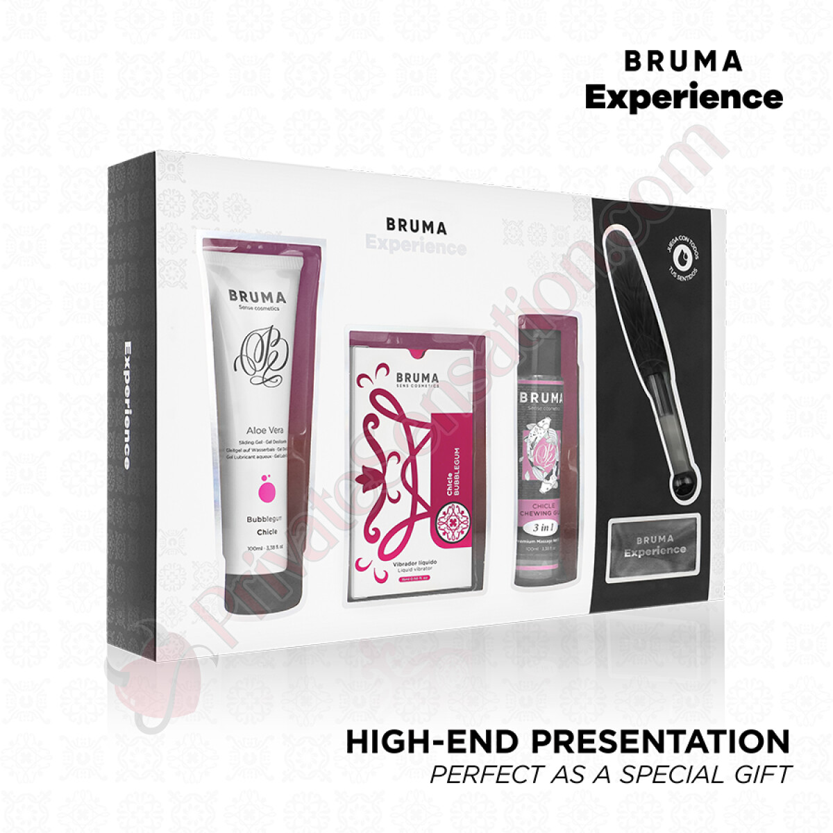 Con BRUMA, puoi fidarti di star scegliendo prodotti di alta qualità progettati per migliorare il tuo benessere intimo. Che tu stia esplorando avventure individuali o condivise, il pack BRUMA ti offre un'esperienza unica di scivolamento e morbidezza che ti permette di godere al massimo dei tuoi momenti sensuali. Non perdere l'occasione di elevare la tua intimità con questo pack completo e giocoso.