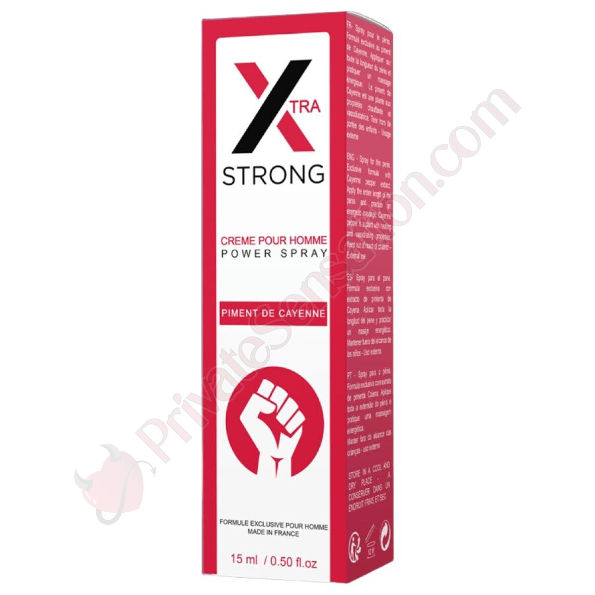 Questo spray da massaggio stimolante per il pene aumenta il desiderio sessuale. Spruzzare una o due volte sul pene e massaggiare con piccoli cerchi sul glande.