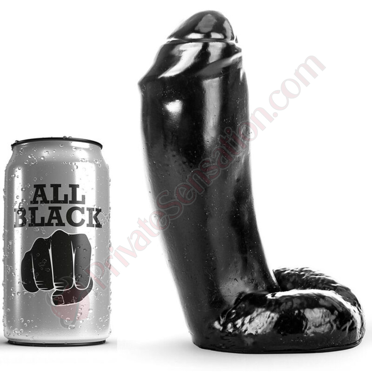 Questo dildo All Black presenta un design realistico con un'asta liscia e dritta e testicoli ben definiti.