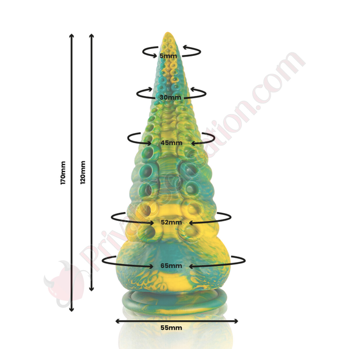 Cetus è un dildo realizzato in silicone che riproduce la forma di un tentacolo. Il suo design è caratterizzato da un colore verde e da una struttura che varia progressivamente in diametro, pensata per offrire sensazioni diversificate lungo il corpo del giocattolo.