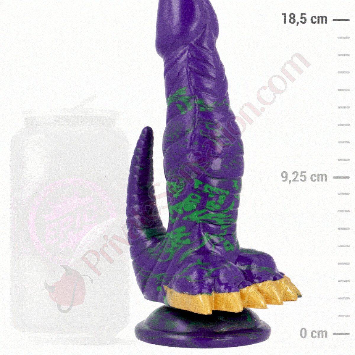 La struttura del dildo Crocotta è caratterizzata da una forma affusolata, più stretta in punta e più spessa verso il basso. Termina con una base ampia che garantisce una presa stabile e sicura durante l'utilizzo.