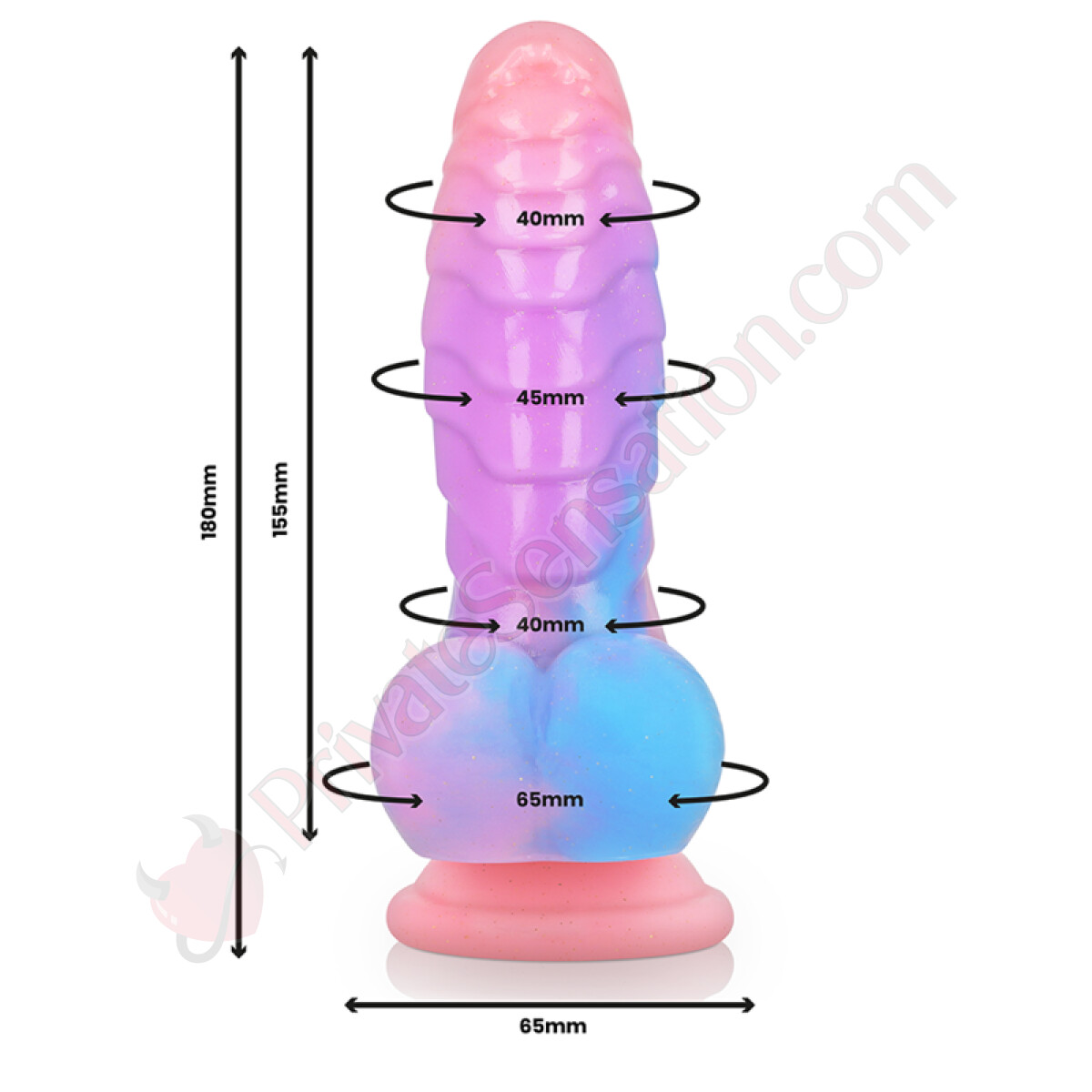 Con una lunghezza totale di 18 cm e un diametro massimo di 4,2 cm, il dildo Empusa offre dimensioni generose. Il peso di 316 grammi contribuisce a una sensazione di solidità e a un controllo preciso durante la manipolazione.