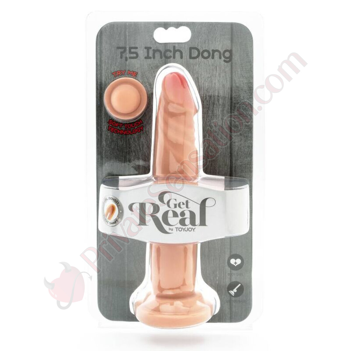Il dildo a doppia densità GET REAL è progettato con una lunghezza di 19 cm e un colore pelle naturale per un aspetto realistico.