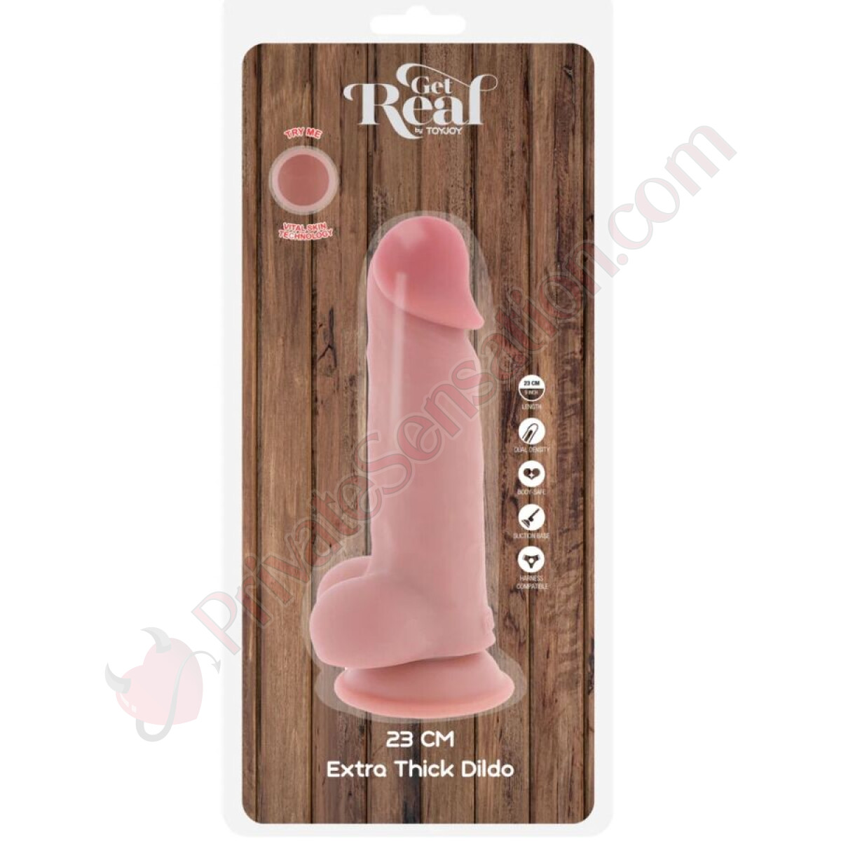 Il Pene Realistico Deluxe GET REAL con testicoli offre un design extra spesso e una lunghezza totale di 23 cm per un'esperienza autentica.
