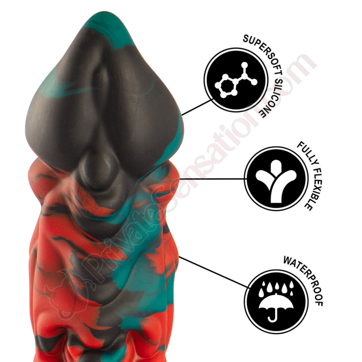 Il dildo Phobos è un modello realizzato in silicone con un peso di 905 grammi che offre una sensazione di consistenza. Il suo design è caratterizzato da dimensioni importanti e da una struttura con diametri variabili per una stimolazione diversificata.
