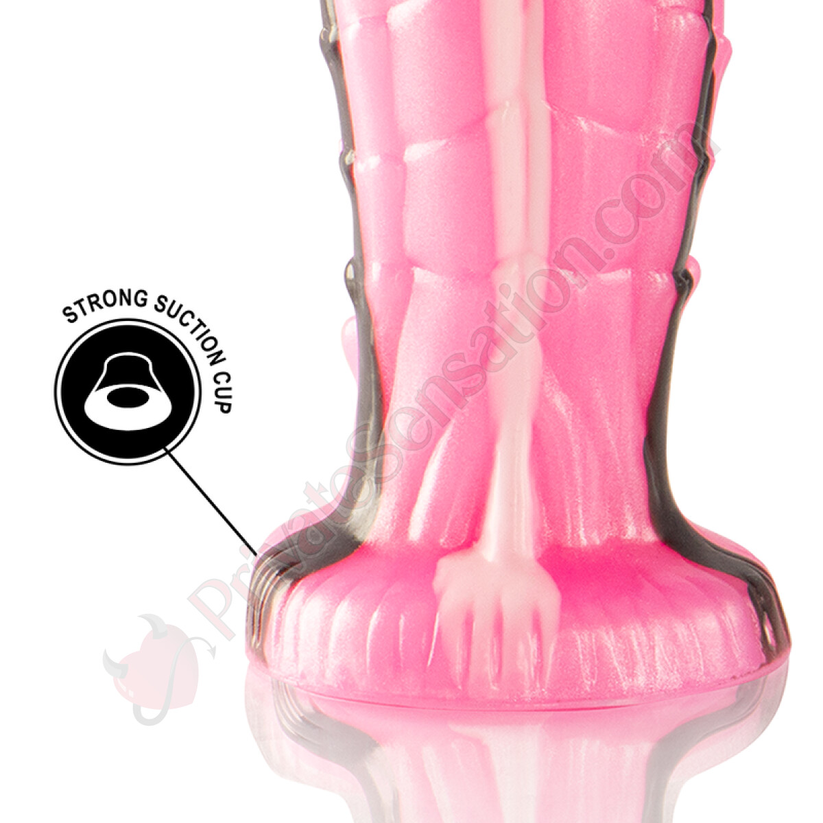 Il dildo presenta un glande da 45 mm, seguito da una sezione superiore più spessa di 65 mm e una parte centrale di 55 mm. Questa variazione di diametro lungo il corpo del dildo crea un'esperienza di pienezza. La base larga 80 mm assicura una presa stabile e un utilizzo sicuro. Realizzato interamente in silicone, offre una superficie liscia e consistente.