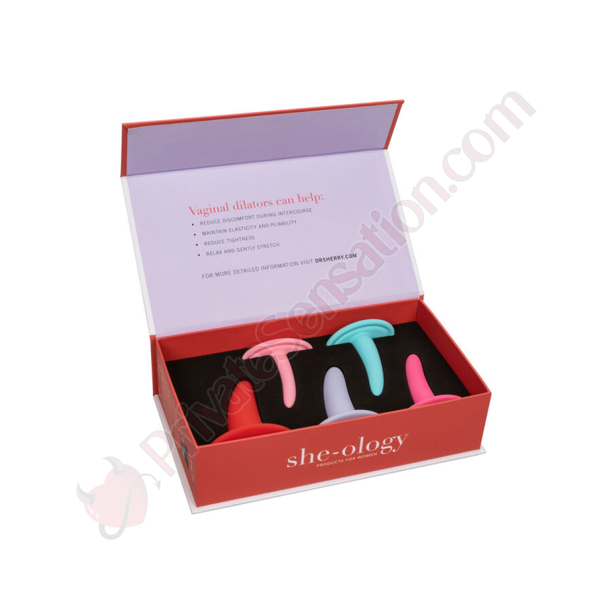 Discover the innovative solution for intimate wellness: the She-Ology 5-piece contoured vaginal dilator set. Meticulously designed to offer a gradual and comfortable dilation experience, this set is the perfect ally for those looking to improve vaginal muscle elasticity and tone. Thanks to its ergonomic shape and progressive sizes, each use becomes a step towards greater comfort and a deep sense of well-being.