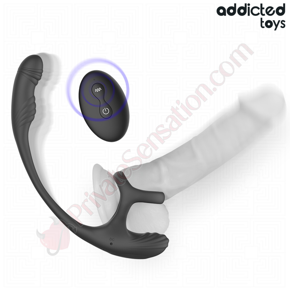 The device is equipped with 10 vibration modes for the testicle area and 10 waving motion functions for the insert. All functions can be managed remotely using the included wireless remote control for convenient and uninterrupted use. It is made of silicone and ABS, materials that are smooth to the touch. The IPX7 waterproof rating facilitates cleaning.