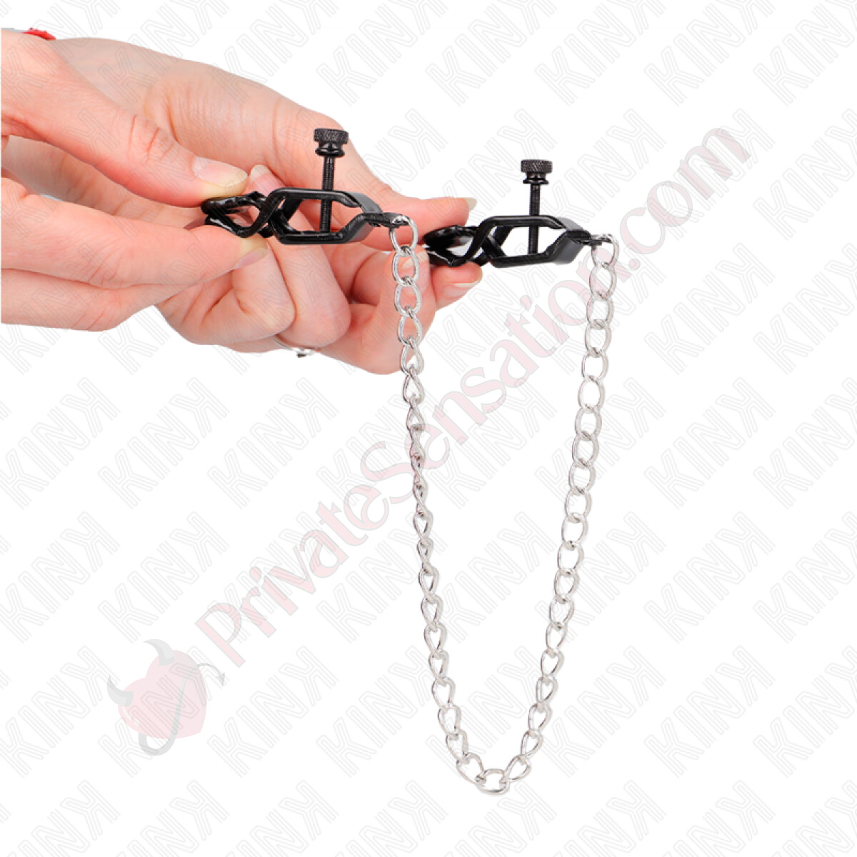 - Clamps with Chains: Add an exciting visual and tactile element. Available in materials like metal and durable plastic, these clamps come with chains of different lengths and thicknesses, allowing additional control and the possibility to add weights or gentle pulls.