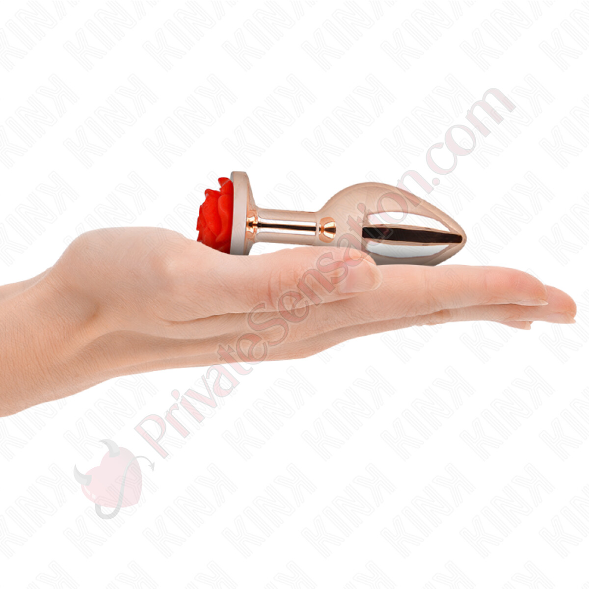 Immerse yourself in a world of unique sensations with this sophisticated metal anal plug in rose gold metallic color, adorned with a delicate red rose at the base. Ideal for those seeking to explore new pleasures, this toy combines luxury, comfort, and versatility, offering a pleasurable experience for all levels.