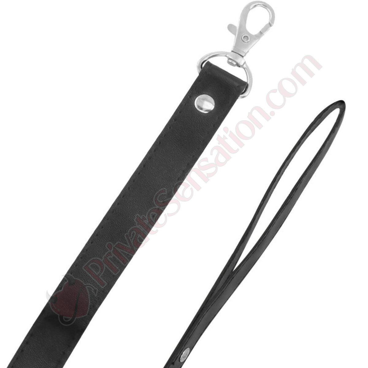 The sturdy black vegan leather chain connects via a lobster clasp to a secure ring integrated into the collar. Complete with a comfortable handle for added convenience during use.