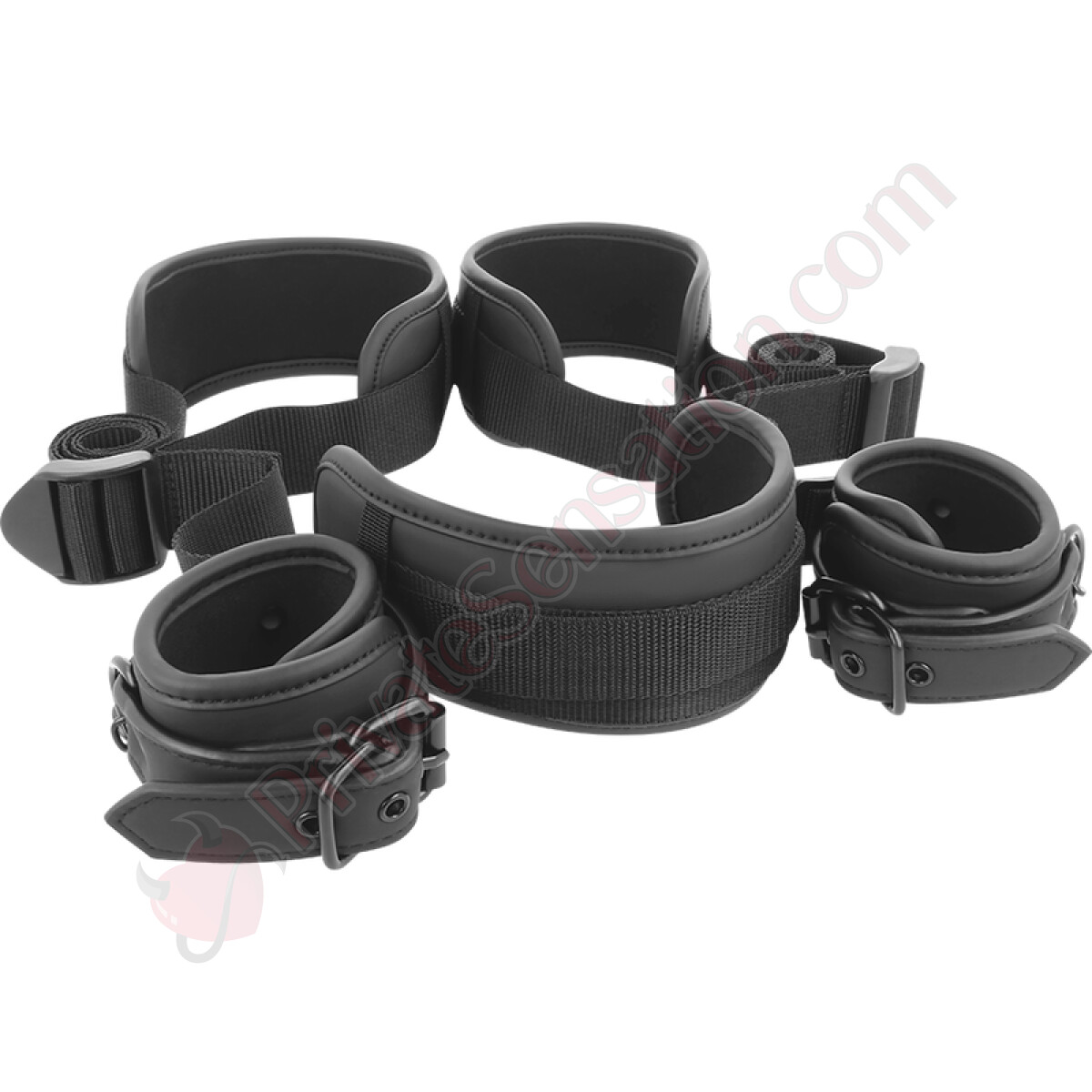 This set is not just an accessory but a true tool to transform your role-playing into unforgettable moments. Thanks to its adjustable straps made of high-quality vegan leather, it ensures a secure hold without compromising comfort. The padded collar, soft and durable, gently wraps around the neck, while the wrist and ankle cuffs provide stability during every movement.