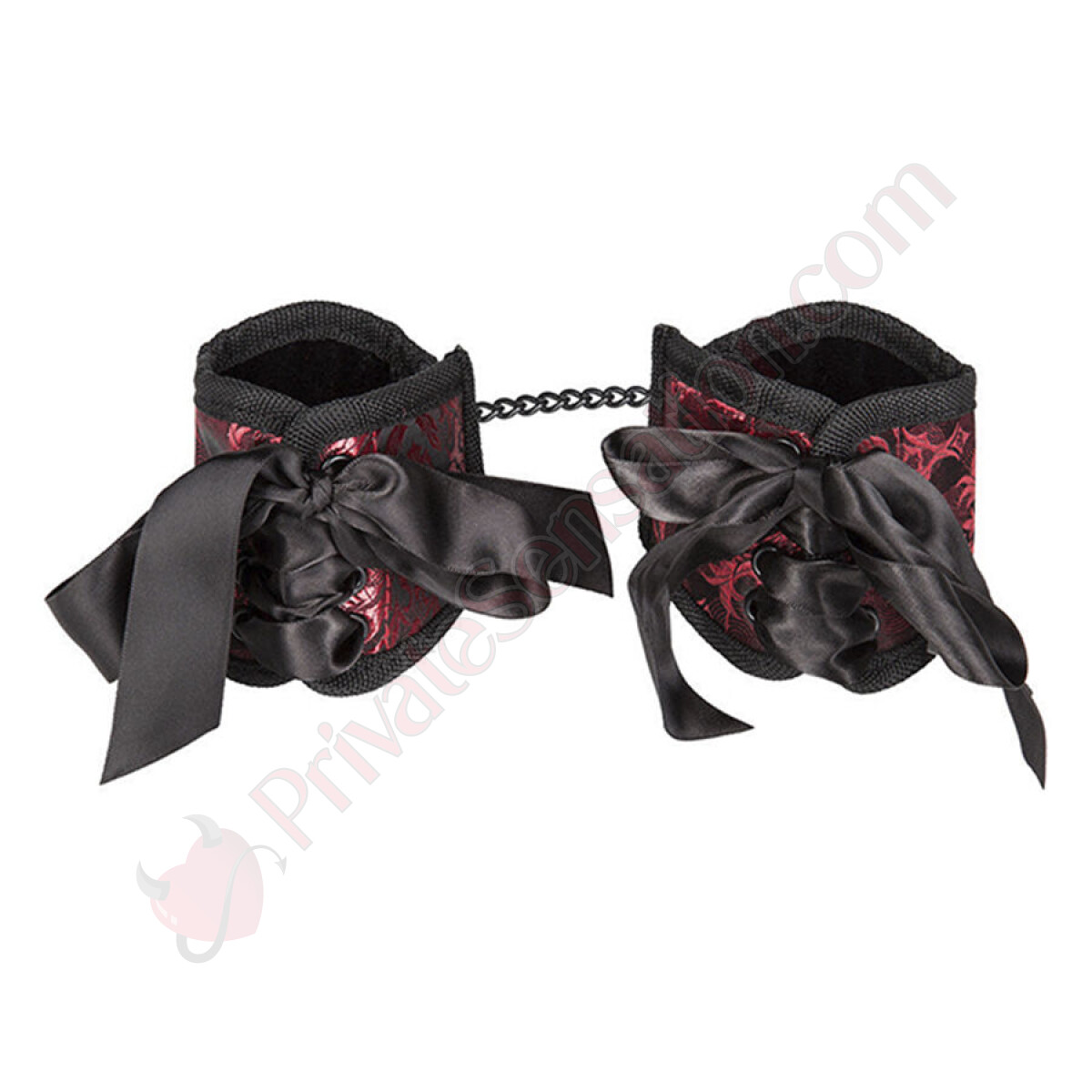 Inspired by the boldest, most sensual lingerie designs, these cuffs feature a striking red and black brocade that evokes passion and mystery. The meticulously crafted lace-up details are not just decorative—they echo the art of Shibari, promising a visually breathtaking experience even before skin contact. Each pair is a statement of intent, an object of desire that sits at the intersection of erotic toy and art piece.
