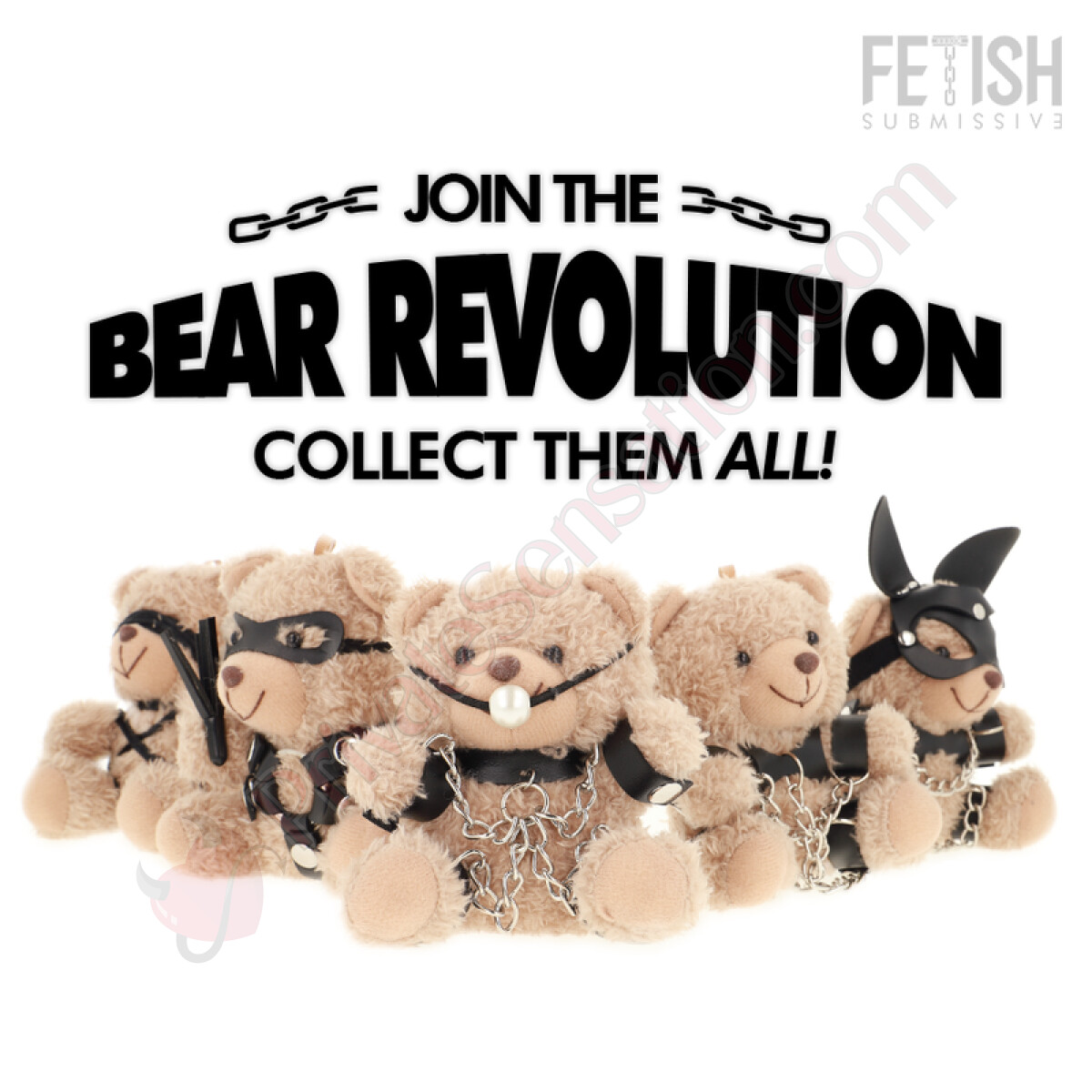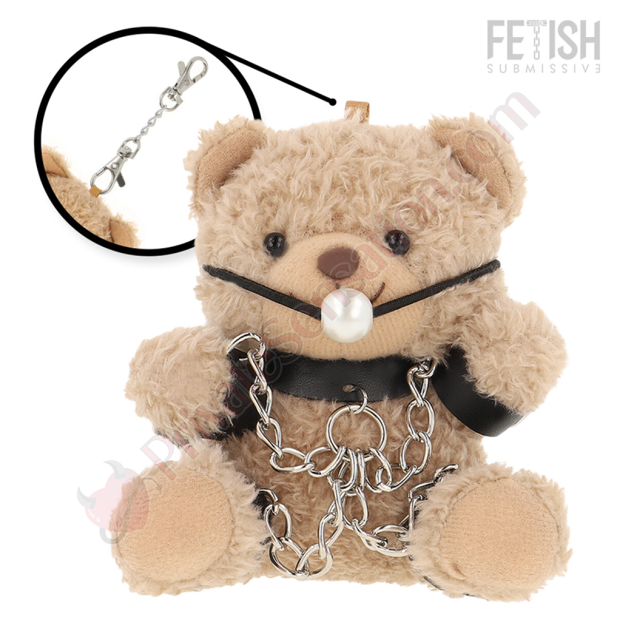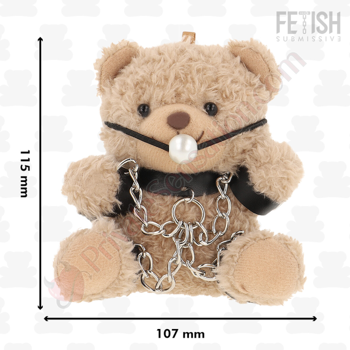 Made with quality materials, Fozzie stands out for its unique accessories. It wears a dark gag and features metallic details on its outfit. The harnesses are crafted from soft leather and lace straps, tailored to its figure. Small chains wrap around the plush body, adding a distinctive visual element.
