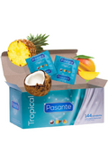 Transform every intimate moment into a tropical adventure with Pasante Tropical condoms. This pack of 144 condoms gives you the freedom to explore three exotic flavors that will stimulate all your senses, creating unforgettable moments of pleasure and connection.