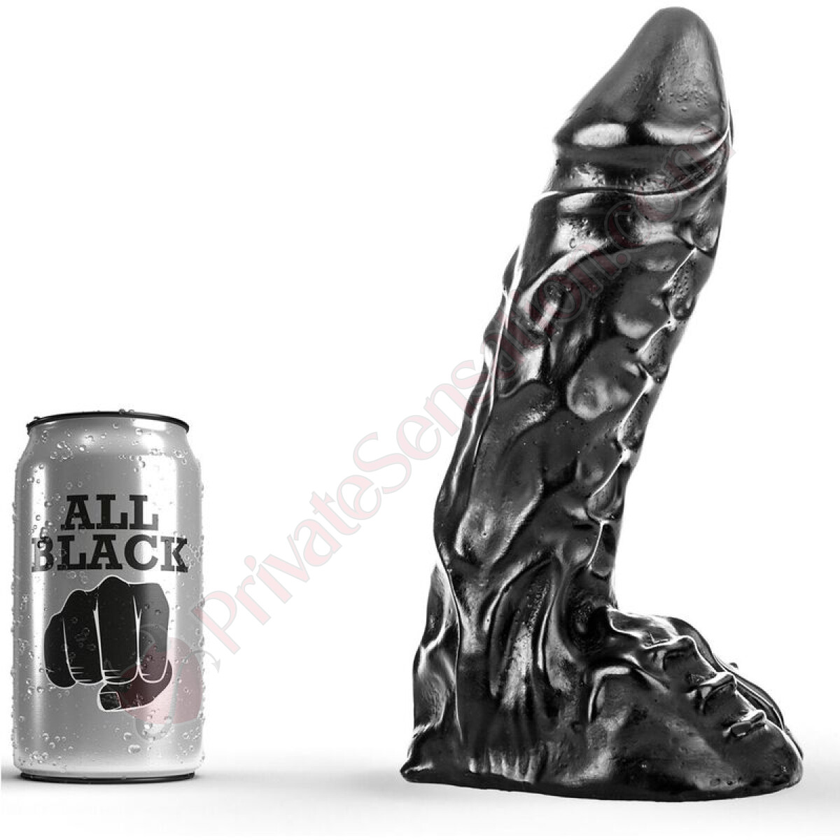 This All Black dildo has very well-formed veins along the shaft and realistic testicles.