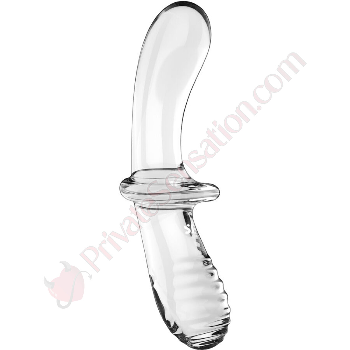 This double-ended dildo is made of borosilicate glass, a material that allows for temperature play. The design offers a dual stimulation option, thanks to two ends with different textures and a central base that ensures a firm grip.