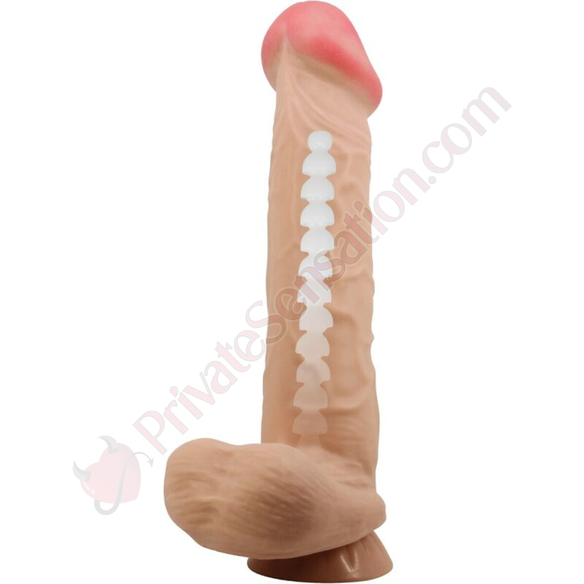 The realistic dildo from the Sliding Skin Series is made from TPR material with a vertebral core design.