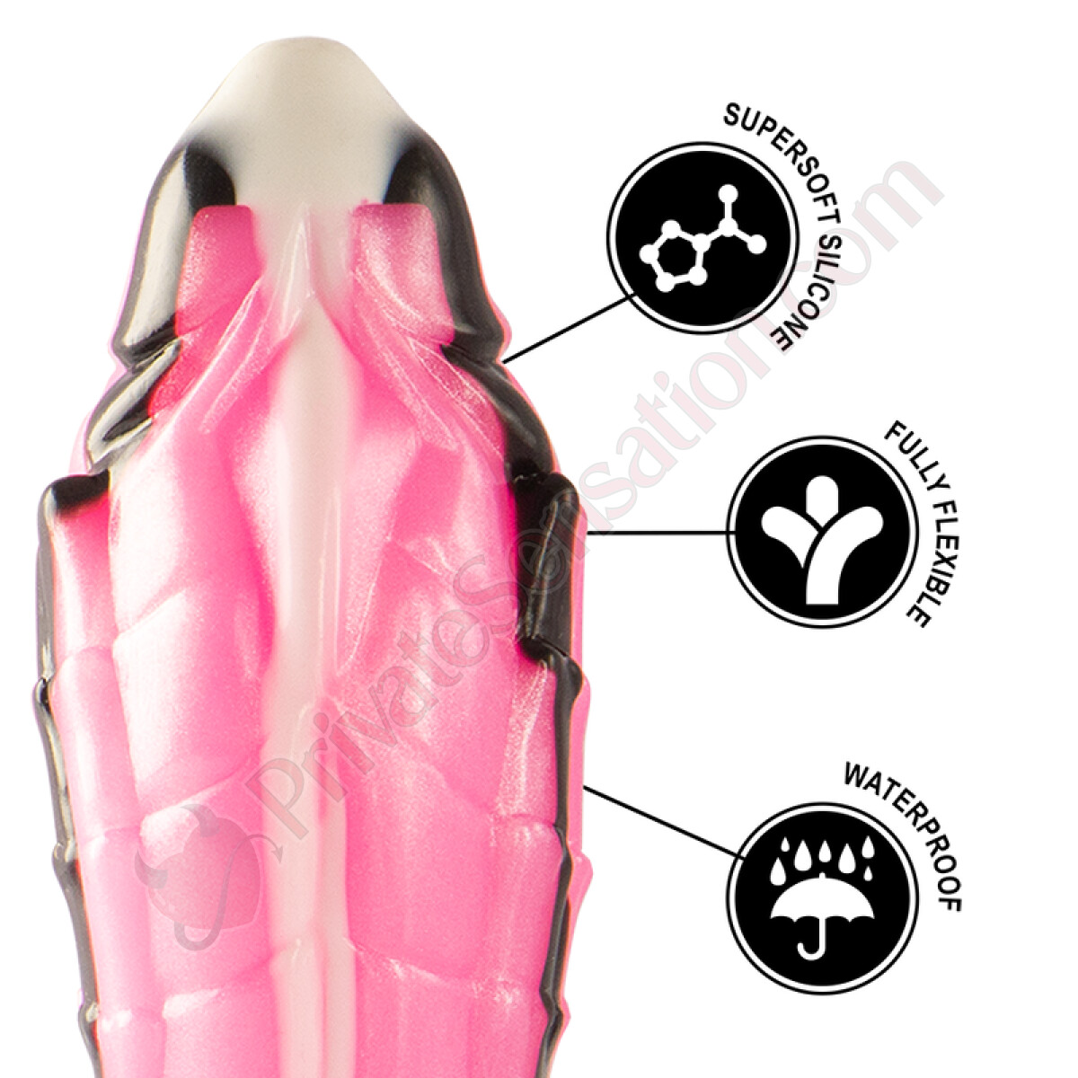 Triton is a dildo made of silicone, featuring a design with varying diameters. Its shape is designed to offer progressive sensations, starting with a narrower tip for gradual insertion.