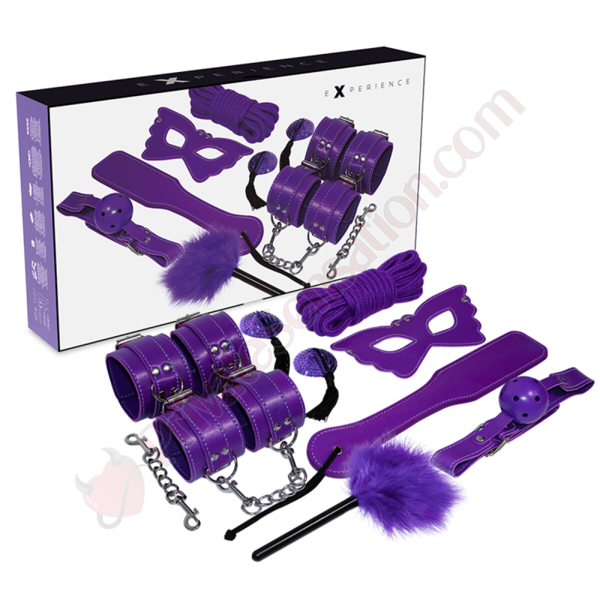 The set consists of 8 essential elements, made of high-quality faux leather in the sensual lilac color, designed to ensure comfort, safety, and maximum pleasure: