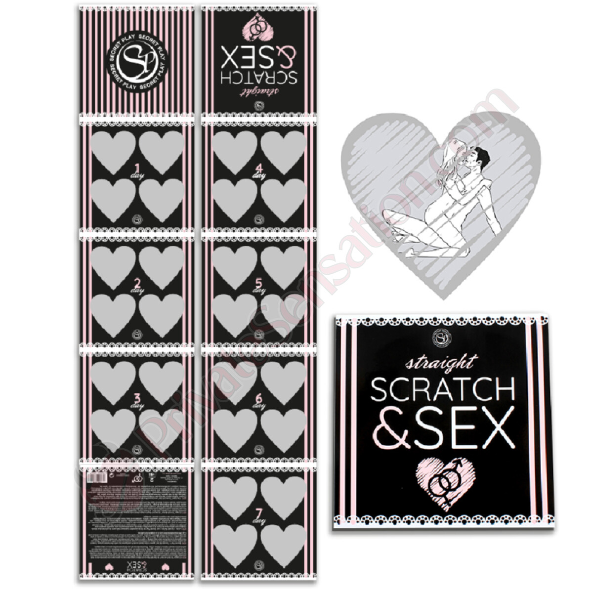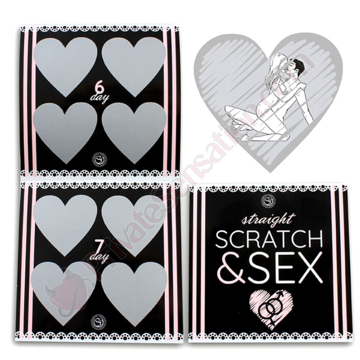 The mechanism is simple yet brilliant: each day, scratch one of the four available options. If luck is on your side, you'll discover a new sexual position to try as a couple. With 7 days of play and 4 daily possibilities, every week becomes a journey toward deeper, more fulfilling intimacy.
