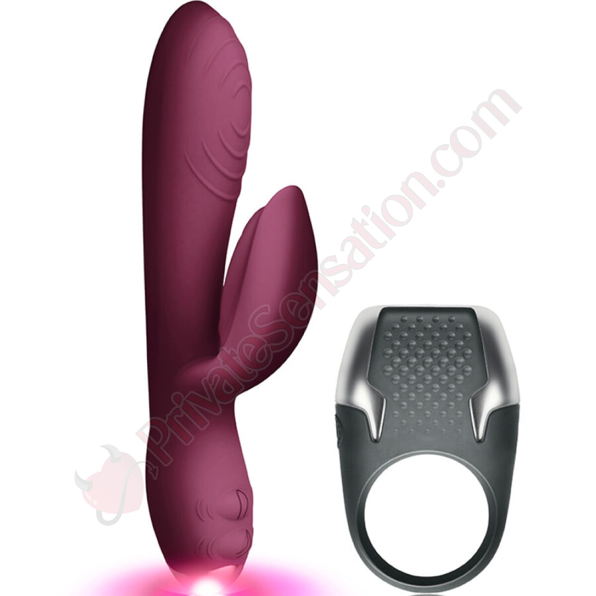 The Lamour kit is designed for couple's exploration and includes two accessories: a rabbit-style vibrator and an LED penis ring. The two devices can be used together to stimulate both partners during intimacy, offering 10 different vibration modes.