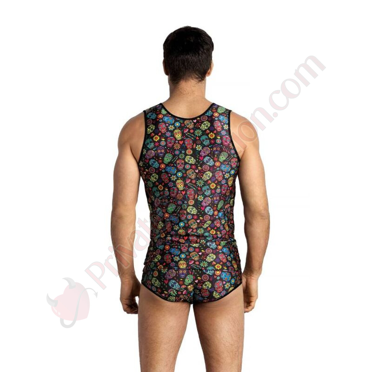 Introducing the ANAIS spaghetti strap top, a piece of lingerie that perfectly embodies the brand's spirit: sexy, sophisticated, and uncompromising. Crafted in a soft light shade, this top features a refined print of small flowers alongside skulls, creating a captivating contrast between delicacy and rebellion. It's the ideal garment for those looking to express their sensuality with style and personality.