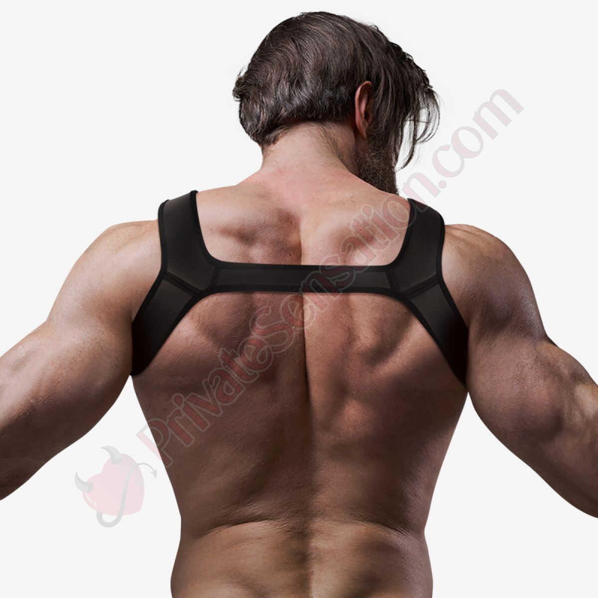 Unleash your power and conquer the dance floor with our front chest harness! This sexy structured front harness is designed to enhance the male figure and boost your sexual image. Thanks to the adaptable material, it's easy to put on and has a flexible sizing that fits your body perfectly.