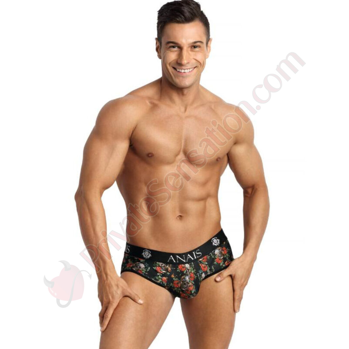 Join the male lingerie revolution. Choose quality, style, and sensuality with the pink skull bikini brief from ANAIS FOR MEN.
