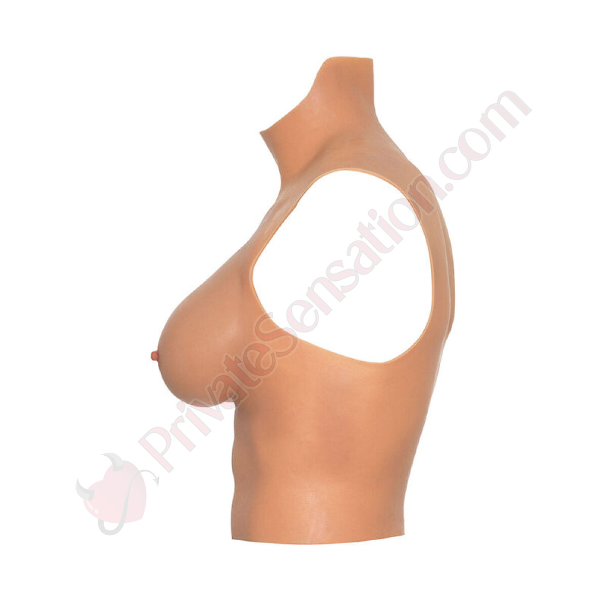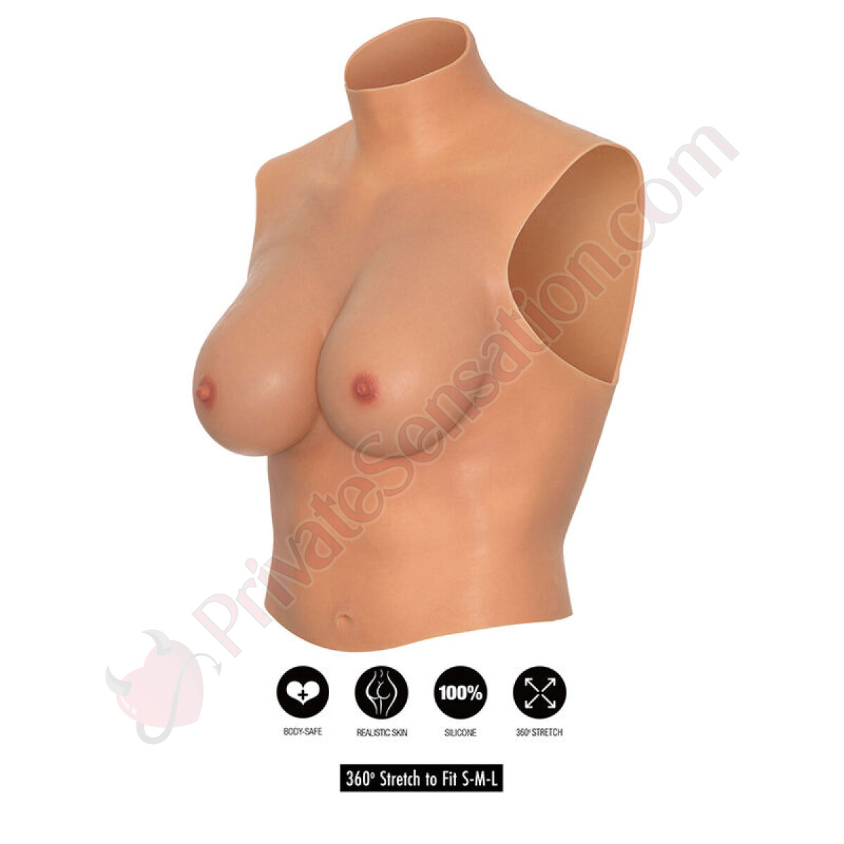 Made from 100% pure silicone, this camisole stands out for its soft touch, flexibility, and durability. It incorporates voluminous and soft breasts, carefully modeled to offer a natural feel to the touch, along with realistic nipples that provide a high level of detail and authenticity. The high neck adds stability and a secure fit, keeping the garment in place during use.