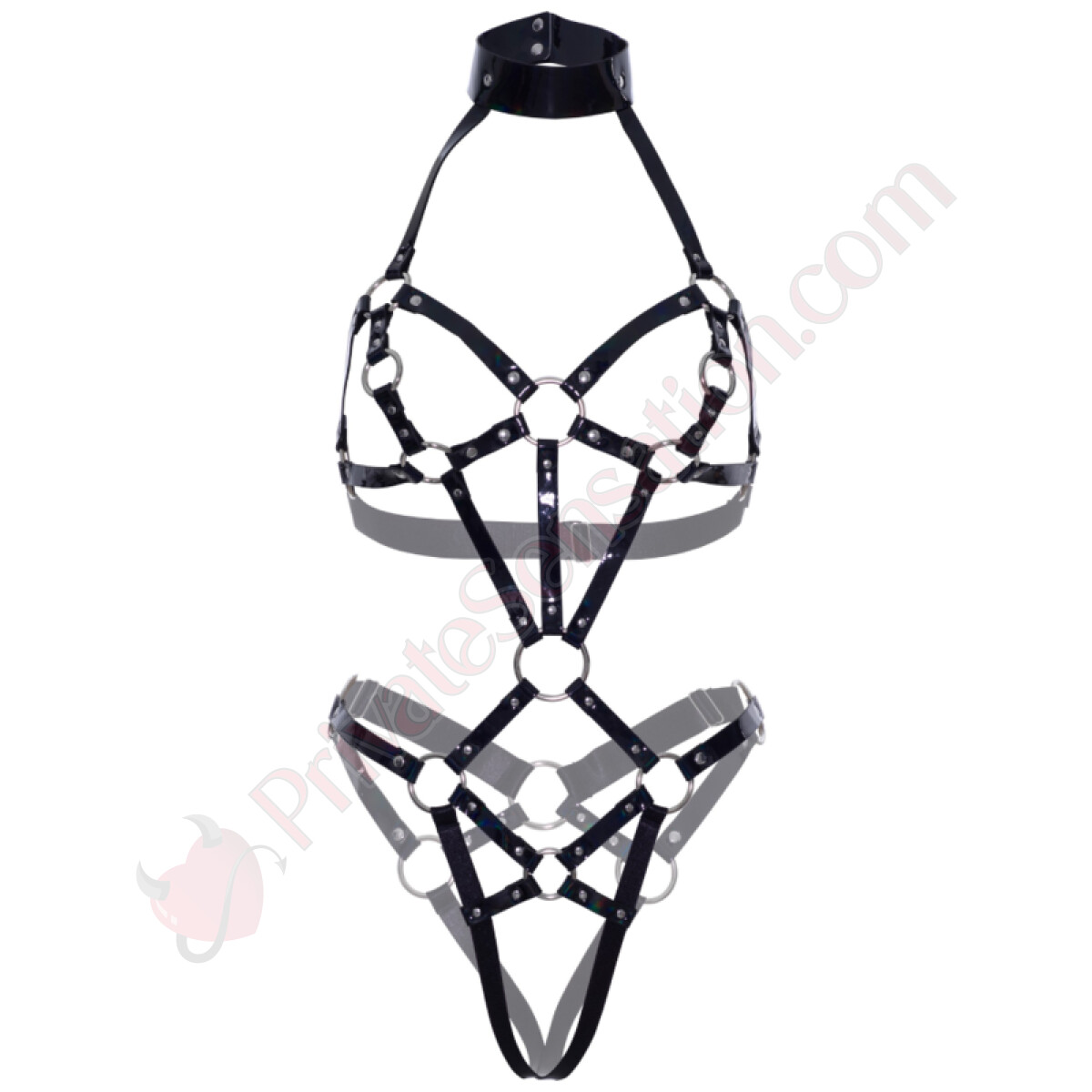 Available in sizes S, M, and L, the bodysuit includes the full harness, while thongs and stockings are sold separately to give you maximum flexibility in creating your ideal outfit. To keep your piece looking like new, we recommend gently cleaning it with a damp cloth and air-drying, preserving the leather's shine and the integrity of the details.