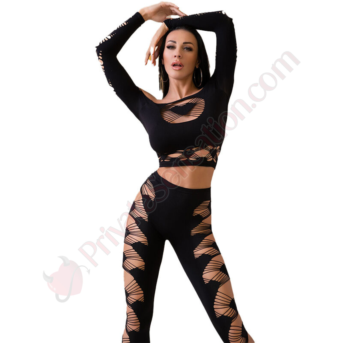 Immerse yourself in a world of elegance and sensuality with this charming set of top and leggings, designed to enhance your femininity and awaken passion. Crafted from a soft material, this set is a bold statement of style and seduction that will make you feel confident and powerful on any occasion.