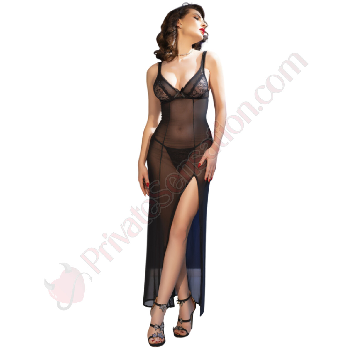 Choose the black long nightie in lace to add a touch of luxury and seduction to your evening routine. Order now and transform your nights into unforgettable moments!