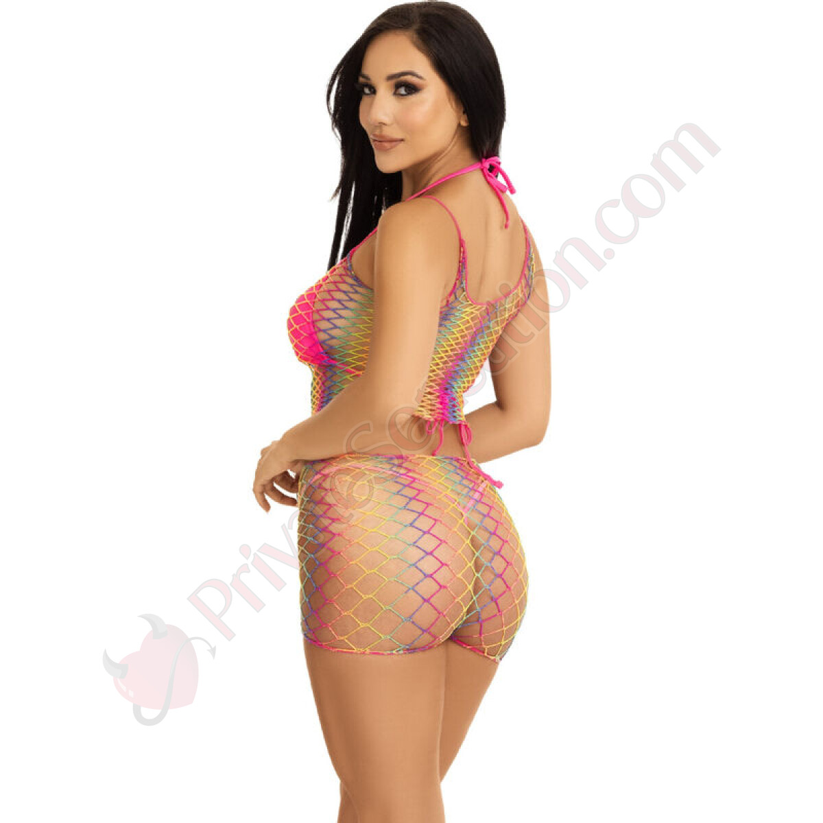 Ready to revolutionize your sportswear collection with a touch of energy and color? The two-piece set consisting of sleeveless top and shorts with twisted rainbow mesh from Leg Avenue is the perfect choice for those seeking a fresh, modern, and irresistibly vibrant style. This ensemble is not just clothing, but a true style statement that combines bold aesthetics with superior functionality.