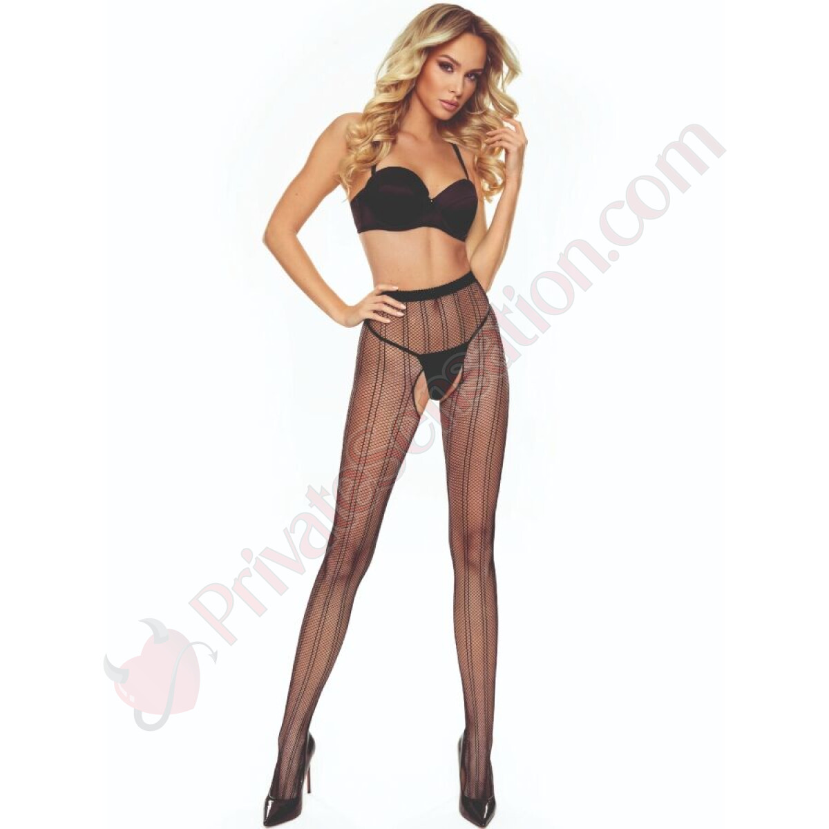 The most distinctive feature of this model is the open crotch area, carefully designed to add a daring touch without sacrificing elegance. This strategic opening: