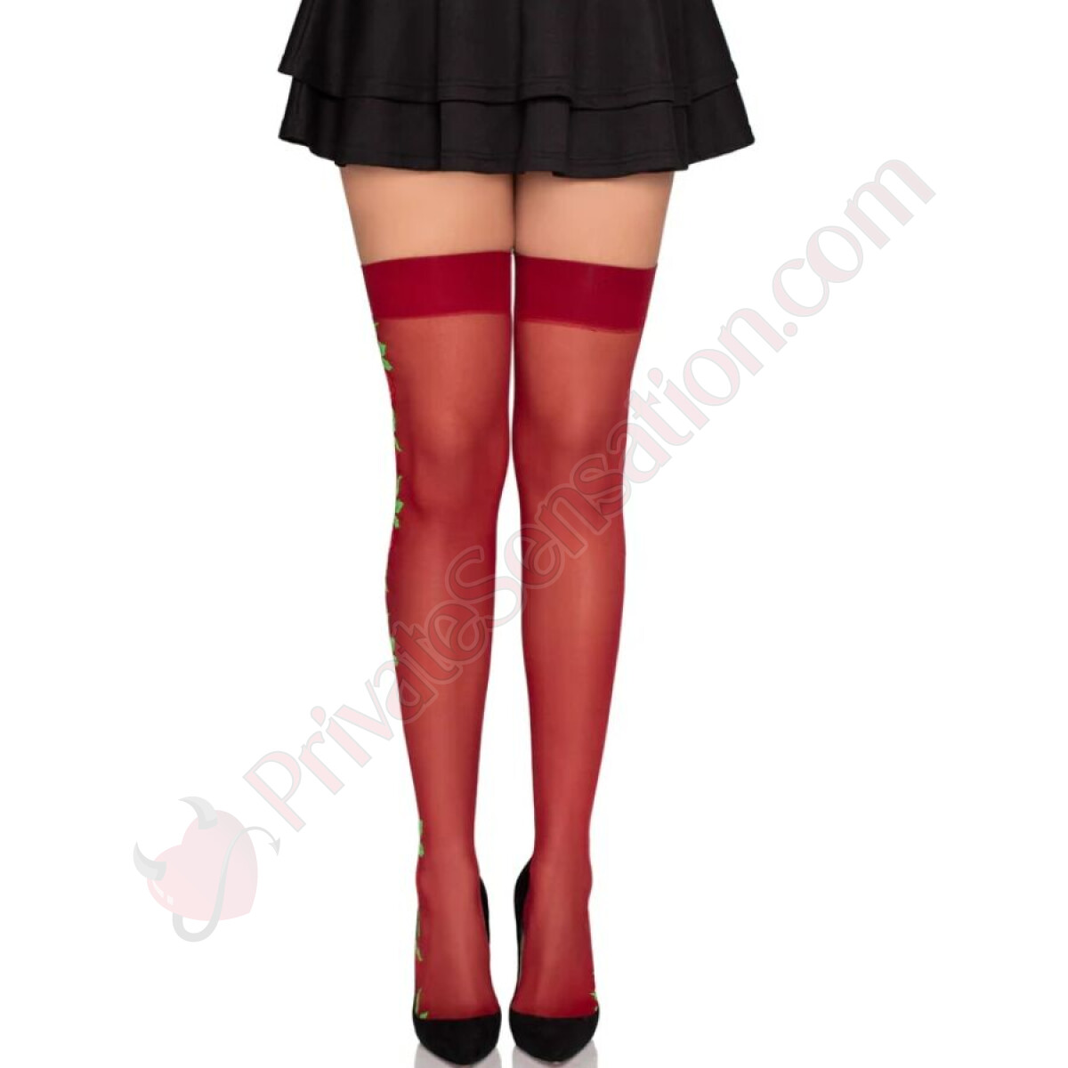 The strength of these stockings lies in the meticulously curated details. The roses embroidered in red and green on the sides are not just a decorative element but a true symbol of femininity and playfulness. This artistic embroidery adds a coquettish and refined touch, making the stockings suitable for both special occasions and everyday moments when you want to feel special. The burgundy color, intense and passionate, pairs perfectly with any shade, from classic black to brighter hues, completing your look with an aura of mystery and charm.