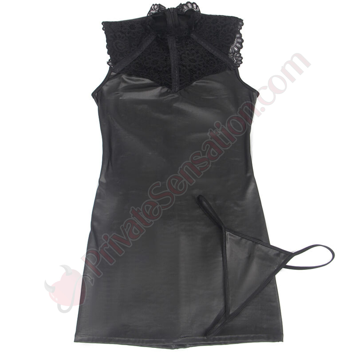 Elegance and seduction elevated to the highest level. This black lace and leather lingerie dress is everything you desire to feel sublime in every moment.