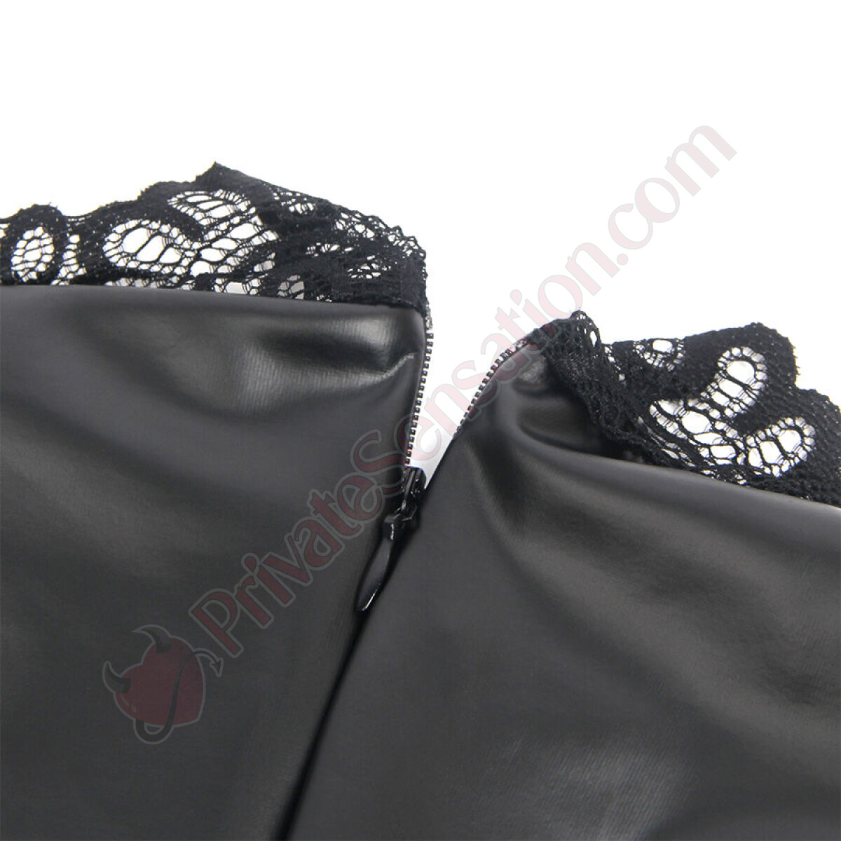 This spectacular design combines the elegance of floral lace with the visual impact of synthetic leather (PU leather), creating an irresistible contrast between delicacy and boldness. The vinyl-effect material adds a seductive and rebellious touch, while lace details provide femininity and sophistication.