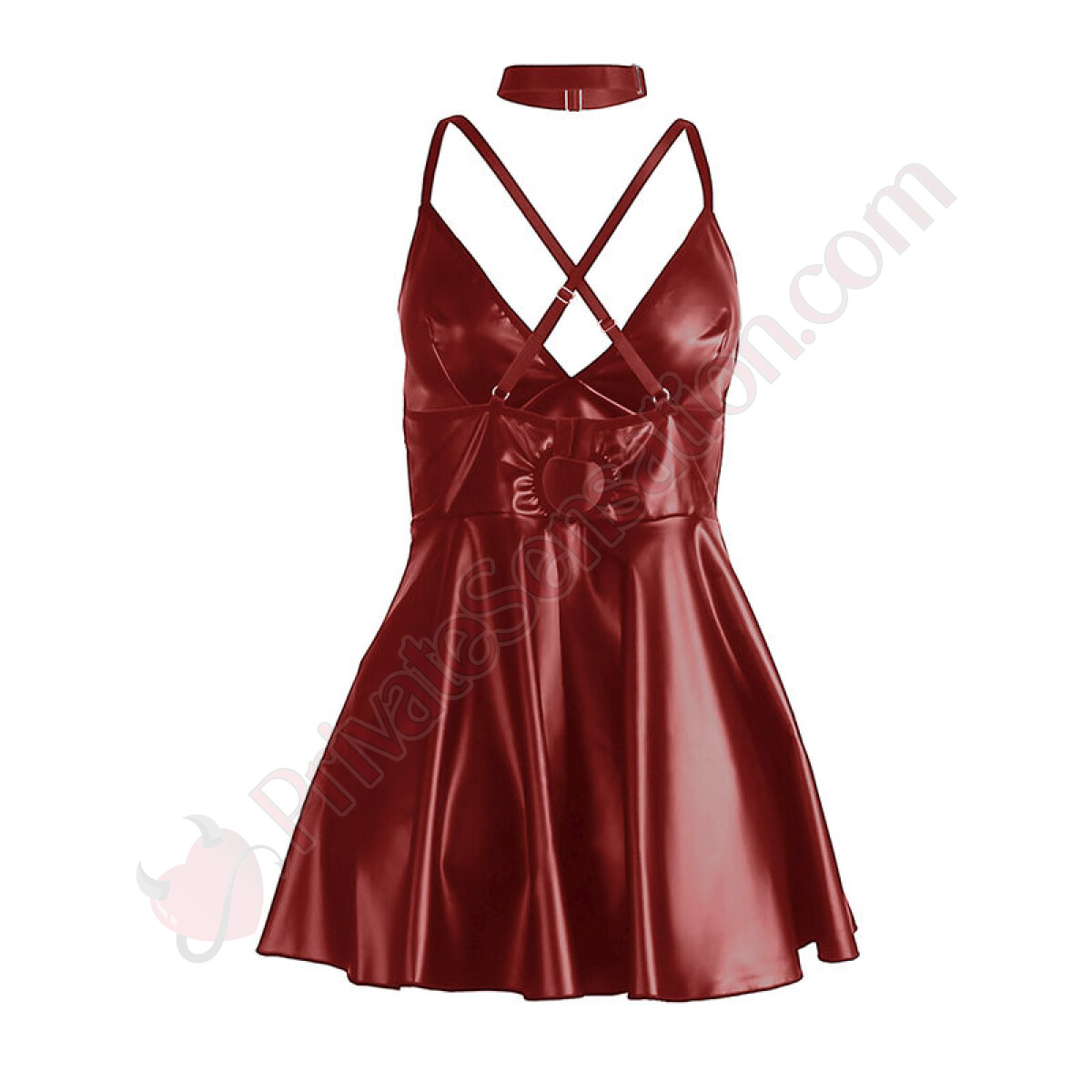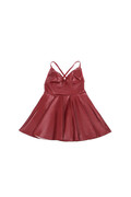 Crafted with a premium blend of 95% polyester and 5% elastane, this nightgown offers an ultra-soft and elastic texture that fits your body perfectly, ensuring comfort and freedom of movement. The synthetic leather (PU) finish in burgundy adds a luxurious and shiny detail, while the adjustable straps allow you to customize the fit for ideal support and a breathtaking silhouette.