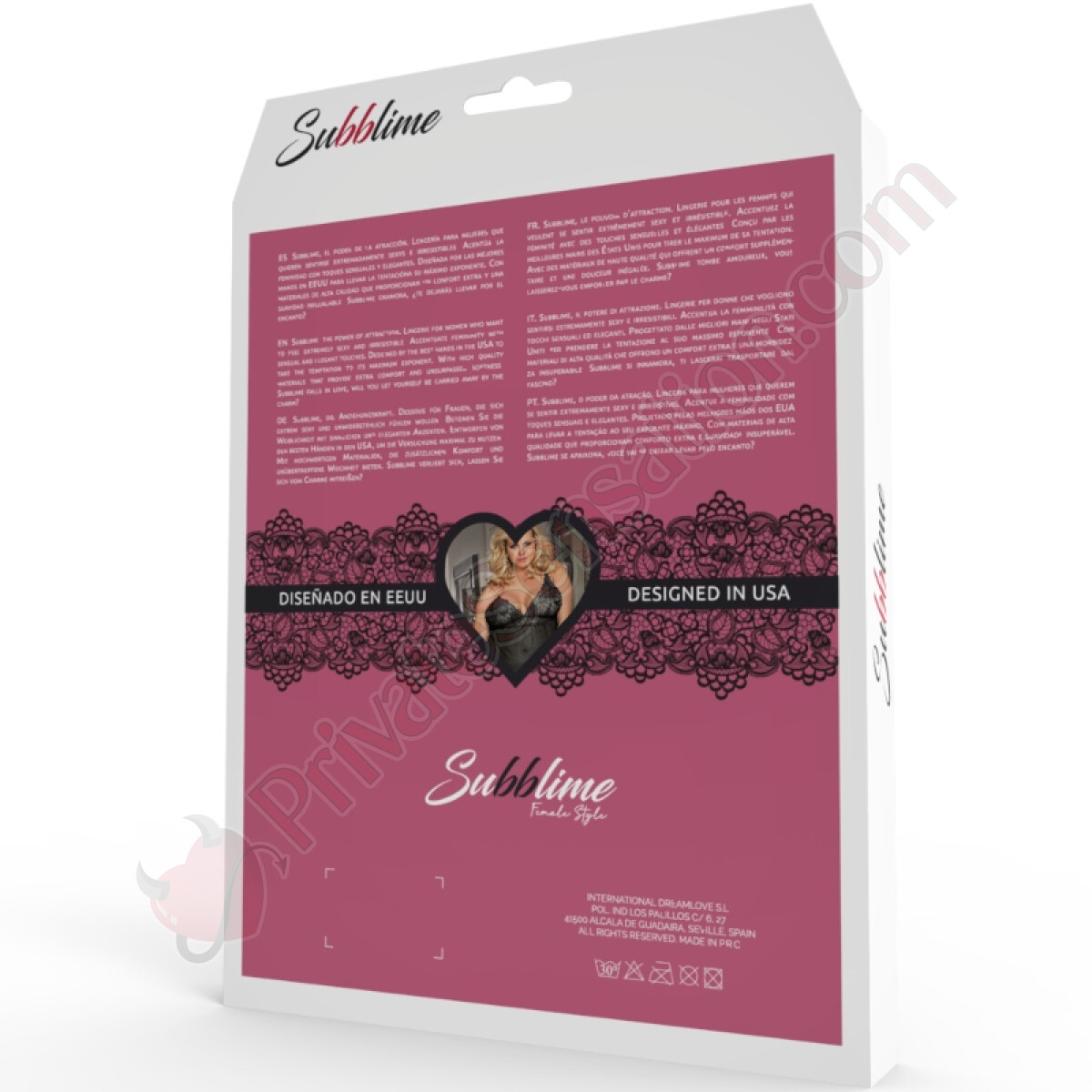 Subblime is a lingerie brand designed in the USA, dedicated to women who seek excellence in every detail. This top-dress represents the fusion of superiority, beauty, and perfection, elevating elegance and seduction to the highest level. It leaves no room for imagination—it makes you feel sublime at every moment. Wear it for special occasions, romantic evenings, or simply to celebrate your daily sensuality. With Subblime, you don't just wear lingerie; you adorn yourself with confidence and irresistible allure.