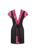 The Kumiko negligee envelops you in an atmosphere of luxury with its refined design. The black and bordeaux colors blend harmoniously, creating a sophisticated contrast that pairs perfectly with the lace trim along the edges. Every detail is carefully curated to give you a sensual and elegant look, ideal for special moments or for feeling your best every day.