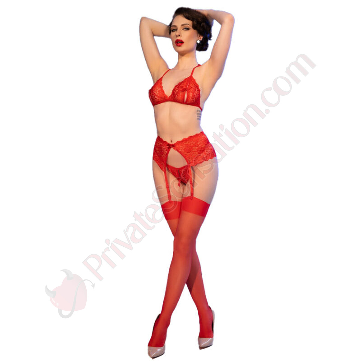Immerse yourself in a world of seduction with this intense red lace lingerie set, designed to ignite passion and create unforgettable moments. Every detail has been crafted to offer a sensual and refined experience, perfect for gifting unique emotions.