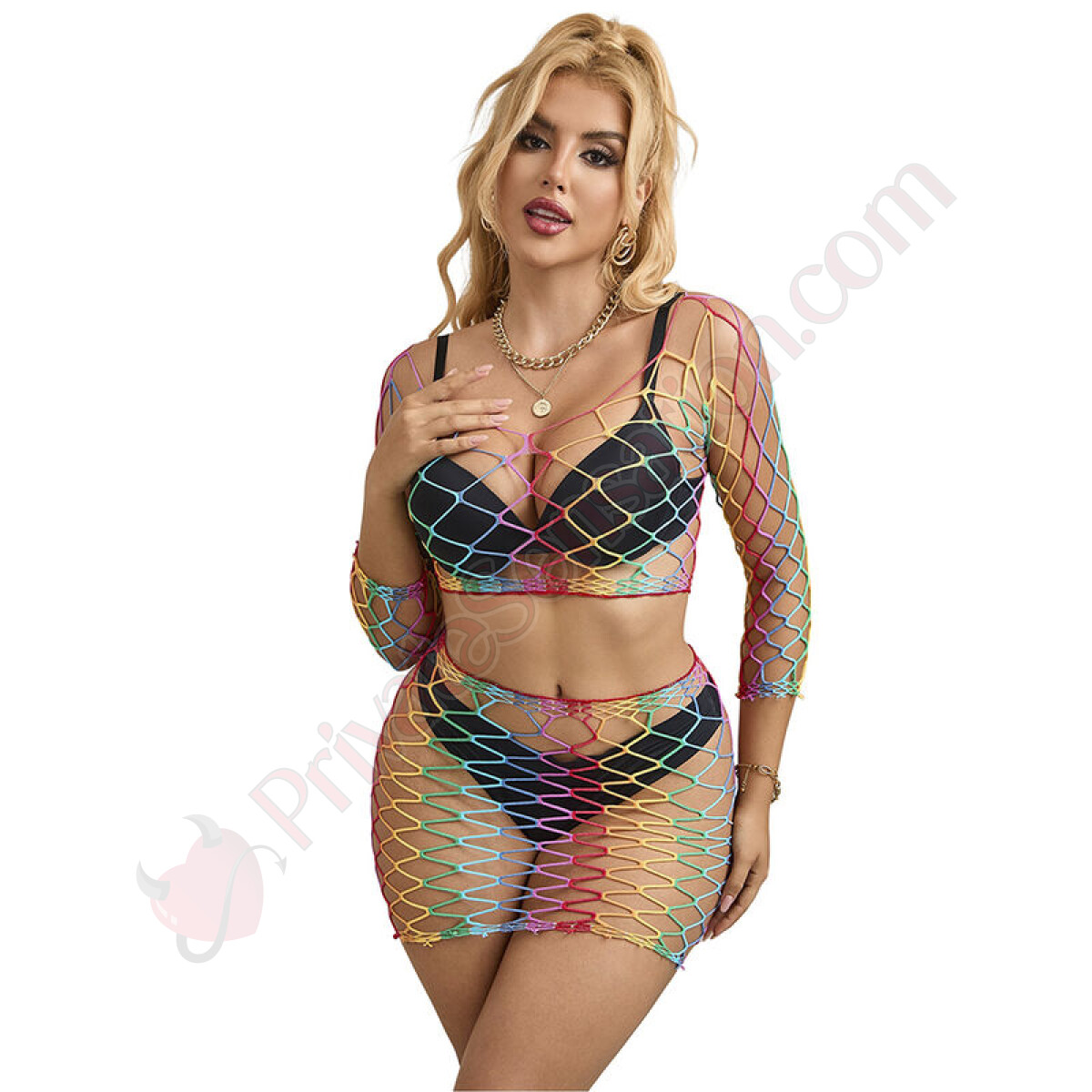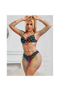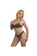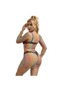 This two-piece rainbow mesh bodysuit is the perfect balance of bold style, exceptional comfort, and uncompromising versatility. Choose sublime seduction.